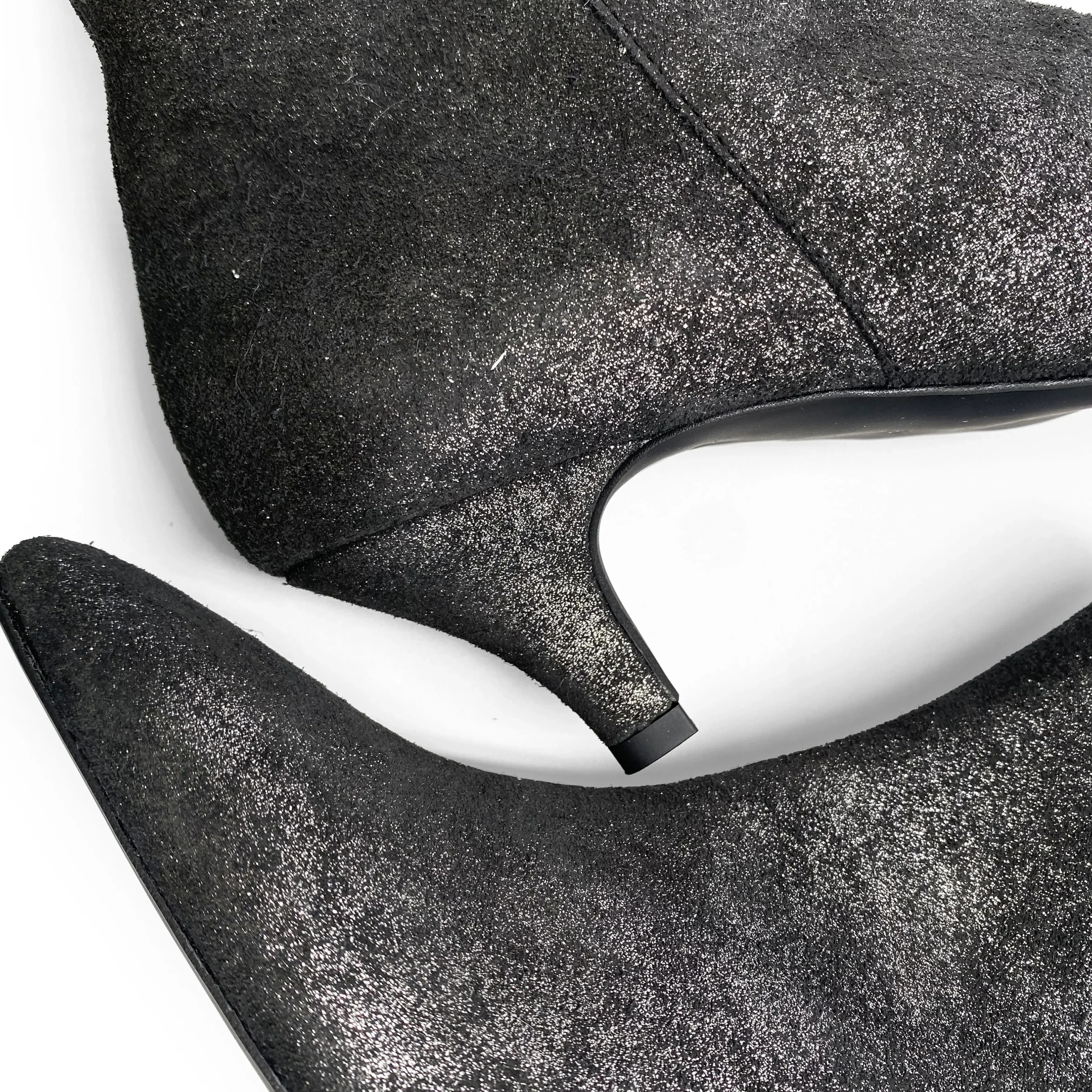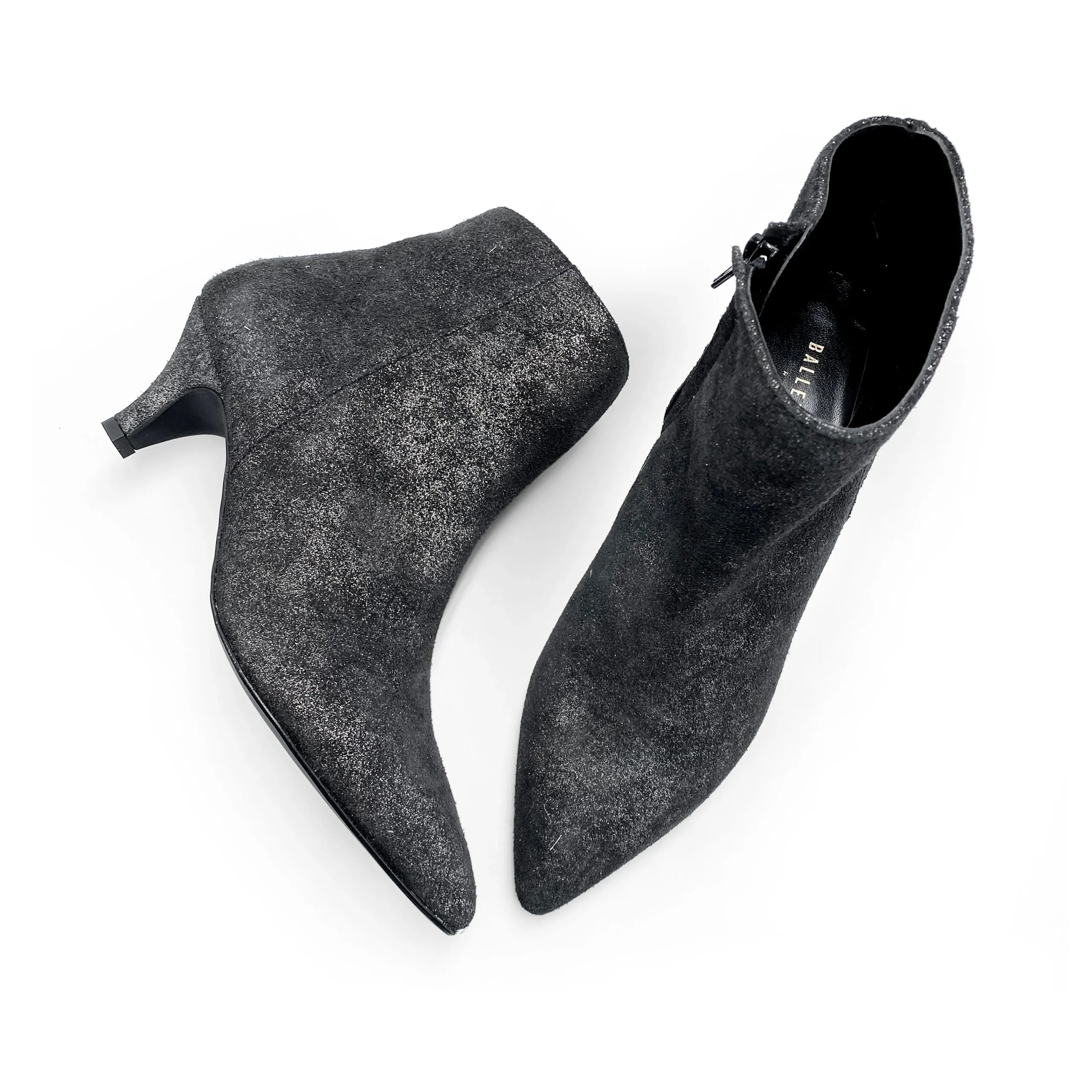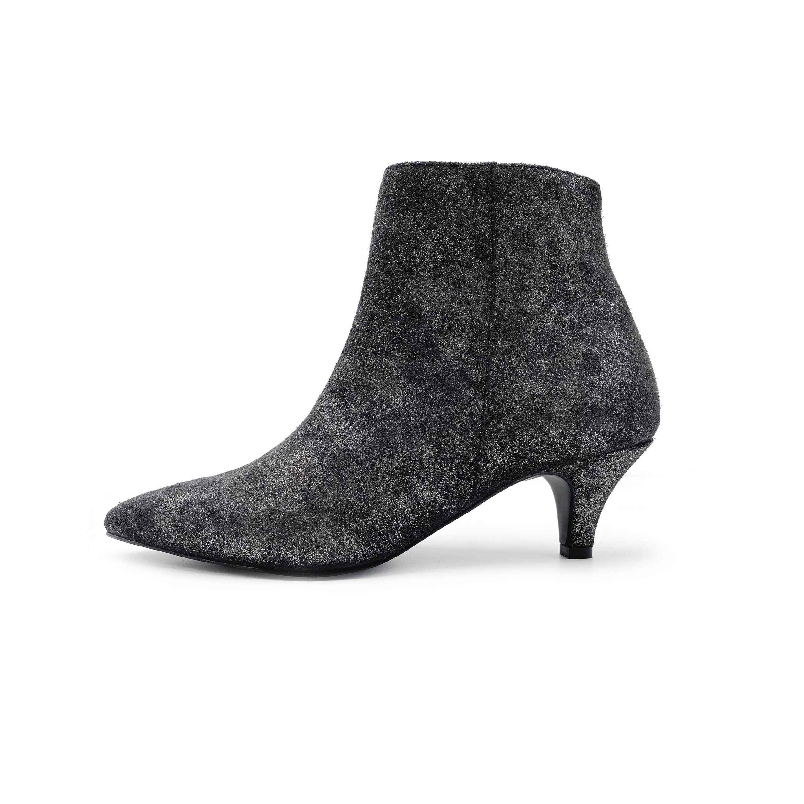 Coronari sono i nuovissimi stivaletti della collezione BallereTTe. Dalla forma affusolata, questi tronchetti alla caviglia sono a punta con un tacco alto di 6 cm che slancia la silhouette. La comoda zip laterale li rende molto pratici da infilare e questa variante in camoscio laminato nero sarà perfetta per dare un tocco glamour ai tuoi outfit invernali. Li potrai abbinare sia con un semplice leggings nero e un maglione colorato sui toni del rosso, per un look grintoso e comodo, o con una mini gonna tubino vita alta argento e una blusa sui toni del viola per un’occasione più elegante.