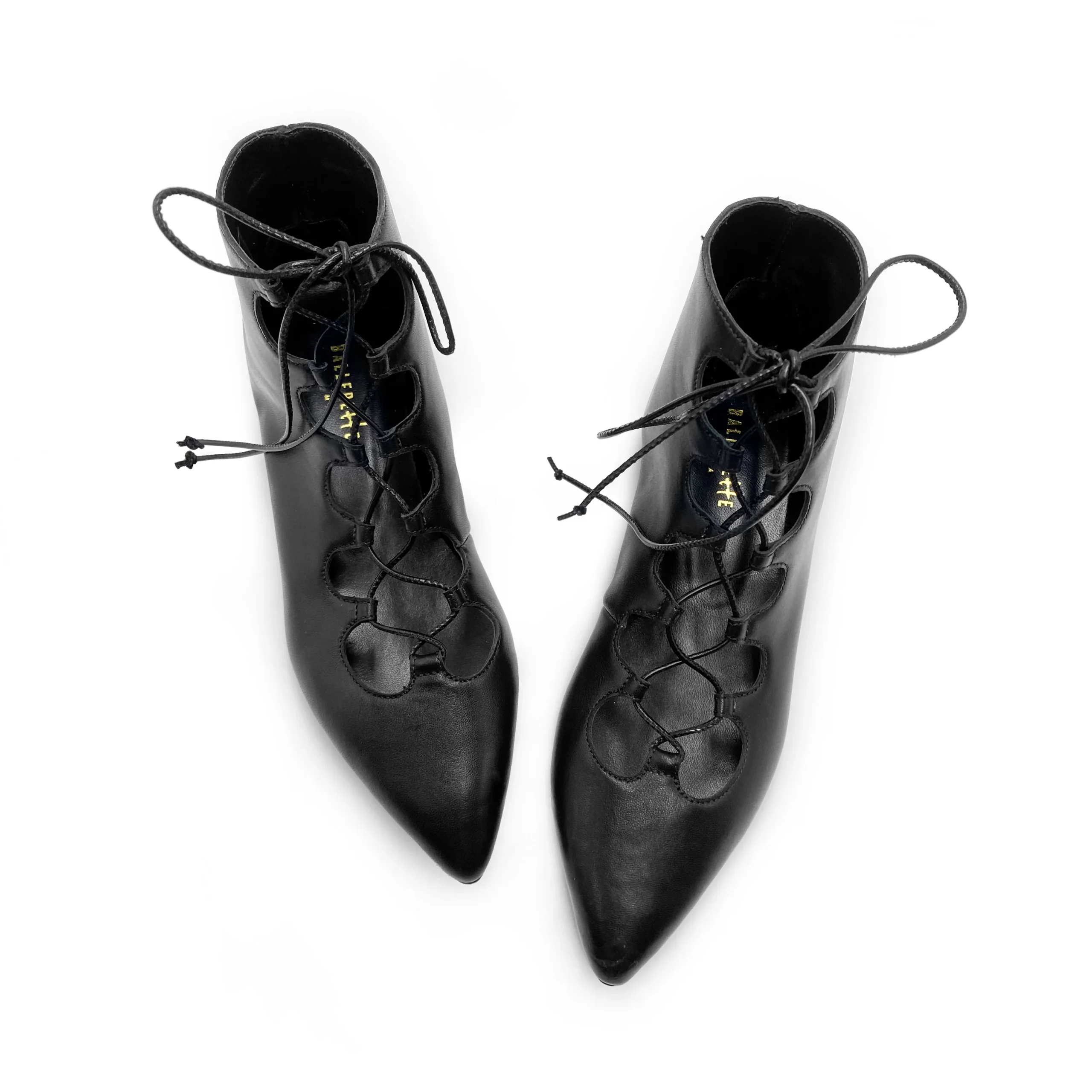 Stivaletti alla caviglia, eleganti e di tendenza, caratterizzati anche da morbidezza e comodità per accompagnarti con stile ogni giorno. Gli ankle boots con lacci intrecciati modello Sistina sono realizzati in pelle nera liscia con punta affusolata e rappresentano un modello essenziale e raffinato, perfetto per chi ama distinguersi con dettagli sofisticati. I lacci sottili intrecciati sul davanti donano un tocco femminile e ricercato, mentre il tacco basso di 2 cm e la suola in gomma garantiscono stabilità e comfort anche nelle giornate più dinamiche. La fodera in pelle nera assicura una calzata morbida e avvolgente, ideale per affrontare la stagione con stile e leggerezza. Il design slanciato ed elegante li rende perfetti sia con pantaloni sartoriali che con gonne o abiti dalle linee fluide. Abbinali a una gonna longuette in maglia grigia e un dolcevita color crema per un look raffinato da giorno, oppure osa con un abito midi in raso verde smeraldo e una giacca in pelle per la sera. Per un contrasto di stile fresco e contemporaneo, indossali con pantaloni larghi color burro e una camicia azzurra oversize. I Sistina sono lo stivaletto con lacci che unisce comfort, femminilità e carattere in un’unica proposta, perfetta per accompagnarti in ogni occasione con un tocco di classe.