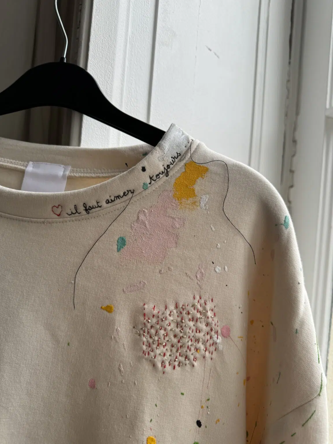 Soyez le premier à laisser votre avis sur “Sweat-shirt coton écru peint & brodé main”