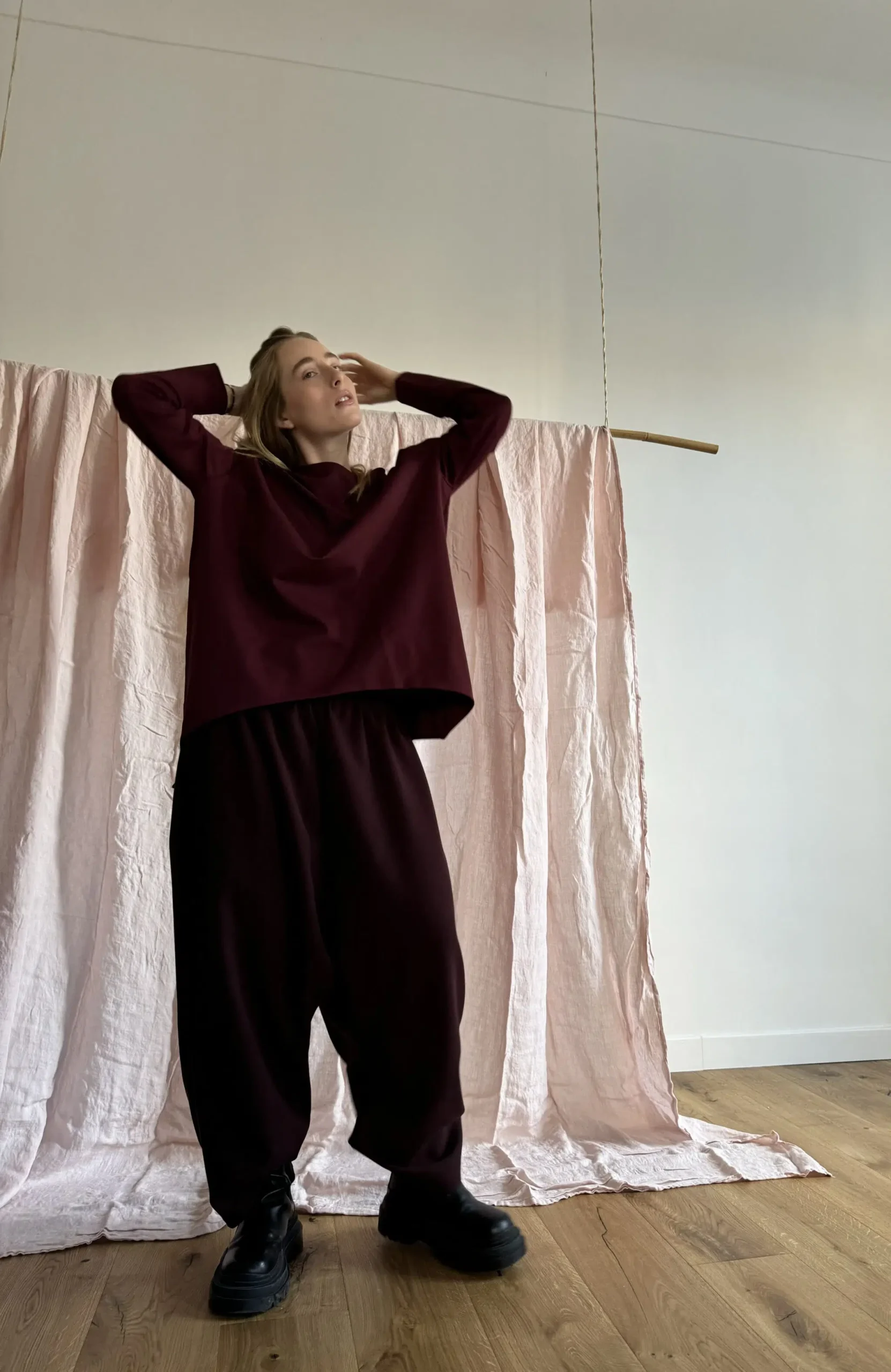 Sweat-shirt en coton French Terry bordeaux, envers gratté. Col rond, bas de sweat-shirt arrondi. Une coupe oversize, minimaliste et intemporelle. Petite édition.