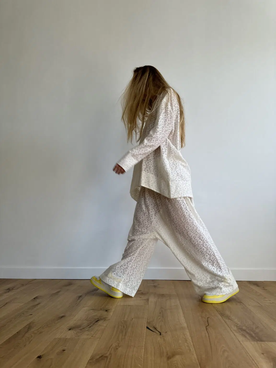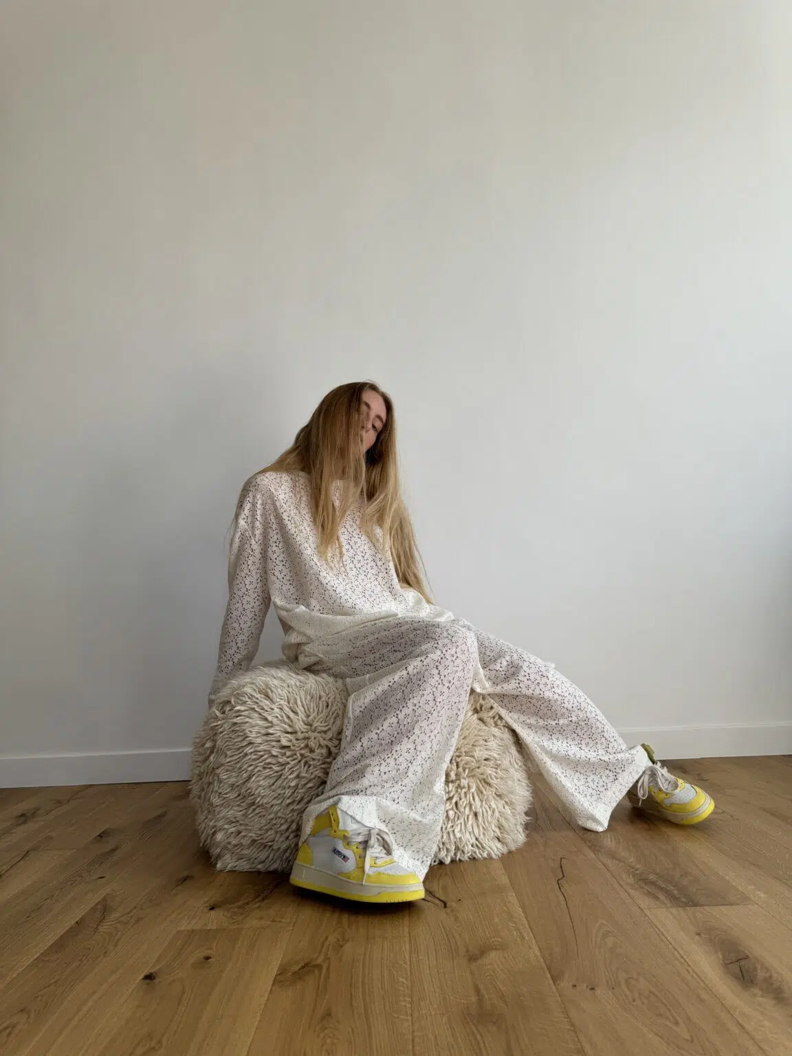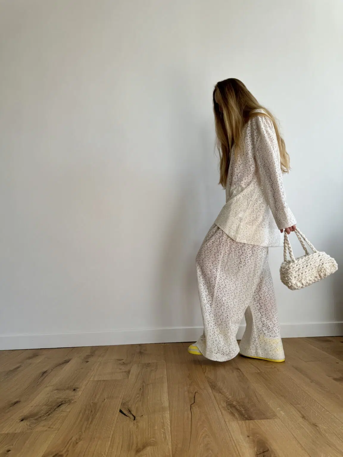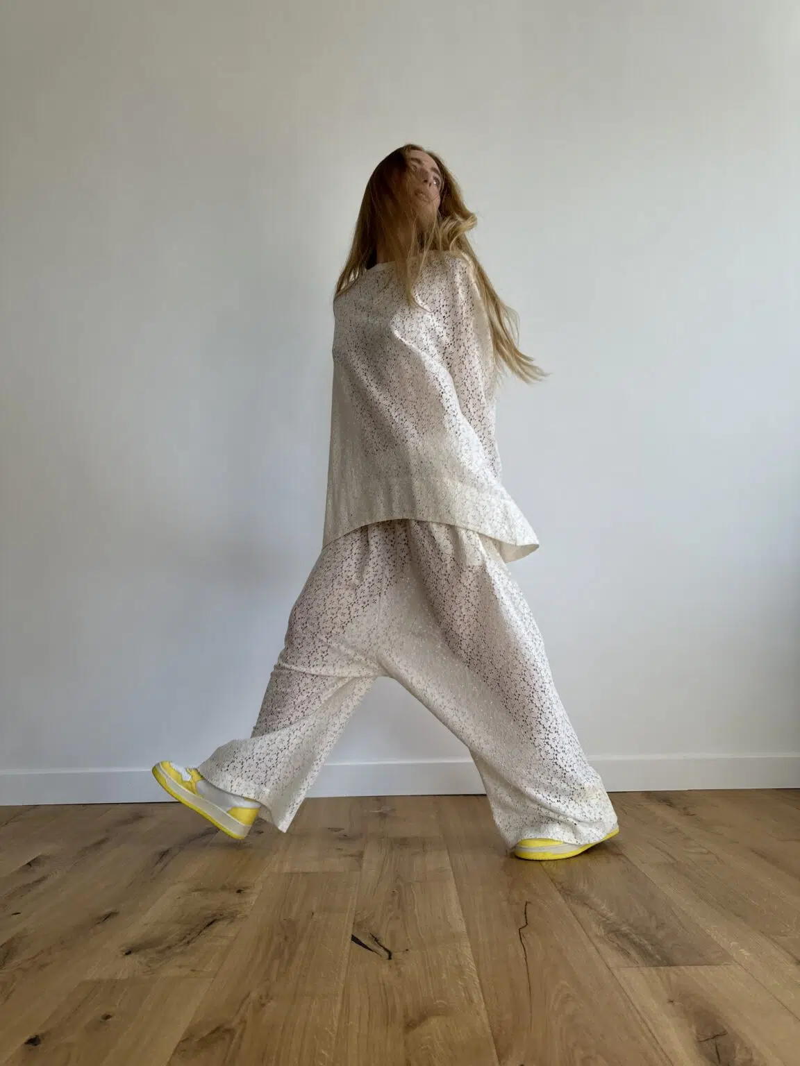 Sweat-shirt dans une sublime dentelle écrue, douce et légère. Col rond, bas de sweat-shirt arrondi. Une coupe oversize, minimaliste et intemporelle. Petite édition.