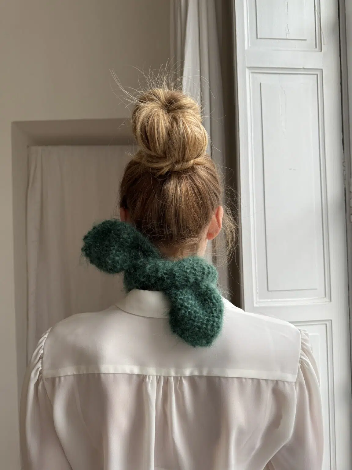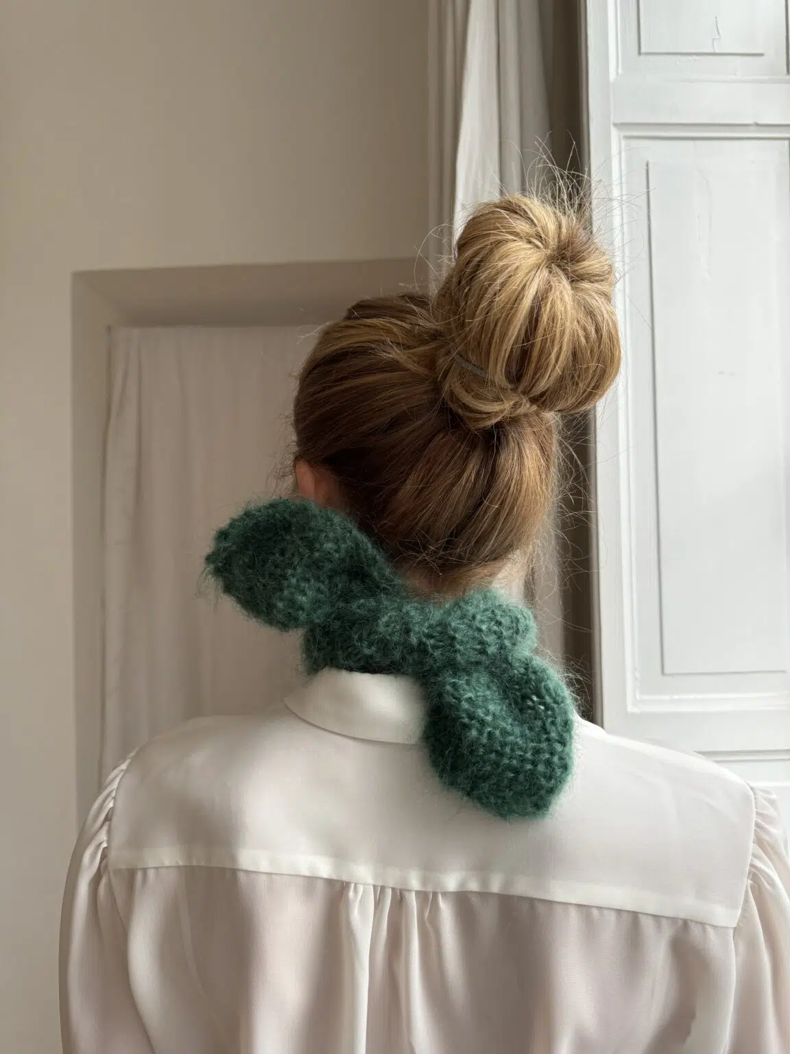 Tour de cou tricoté main en kid mohair coloris vert sapin. Doux tel un câlin. PIÈCE UNIQUE