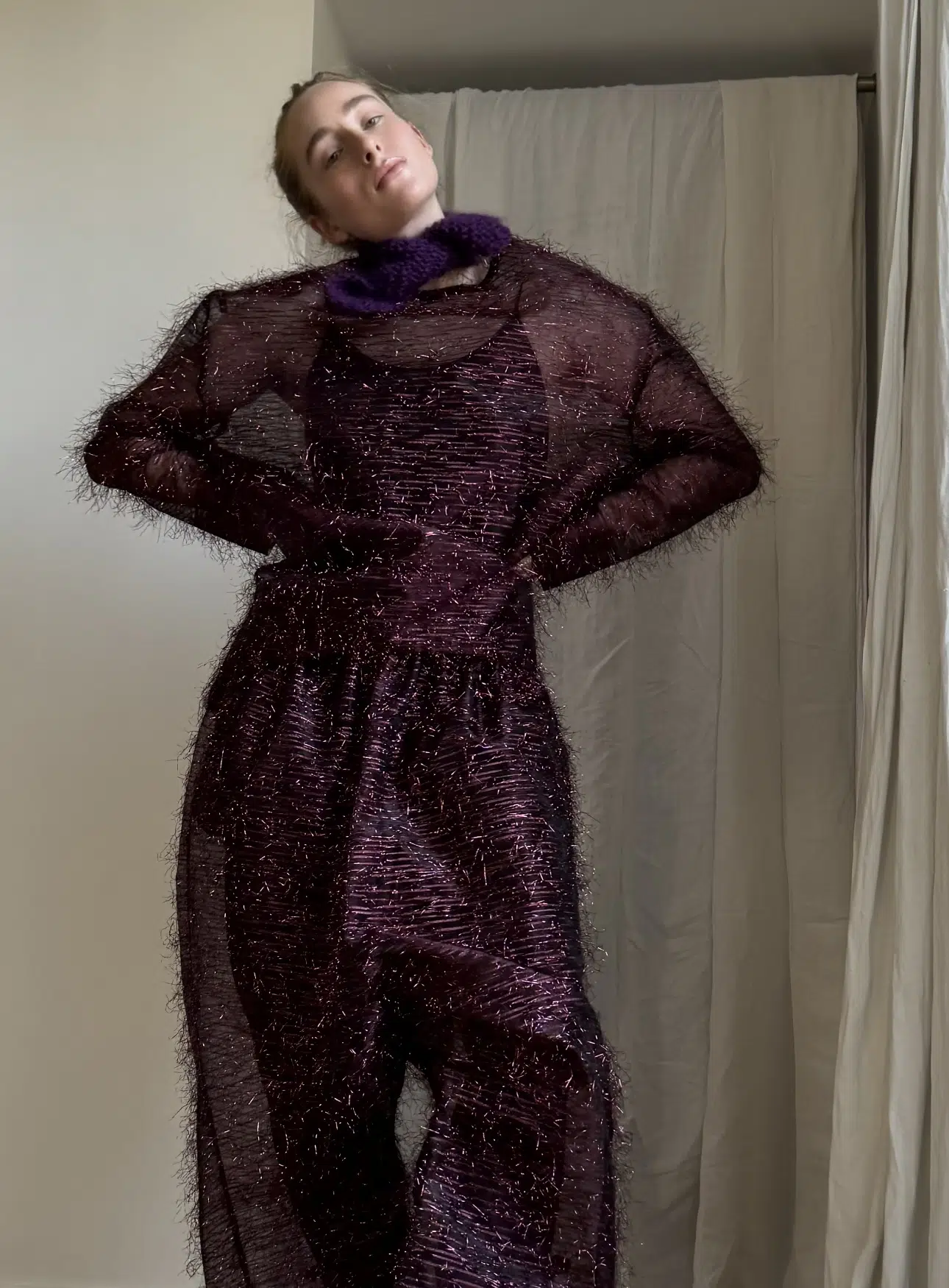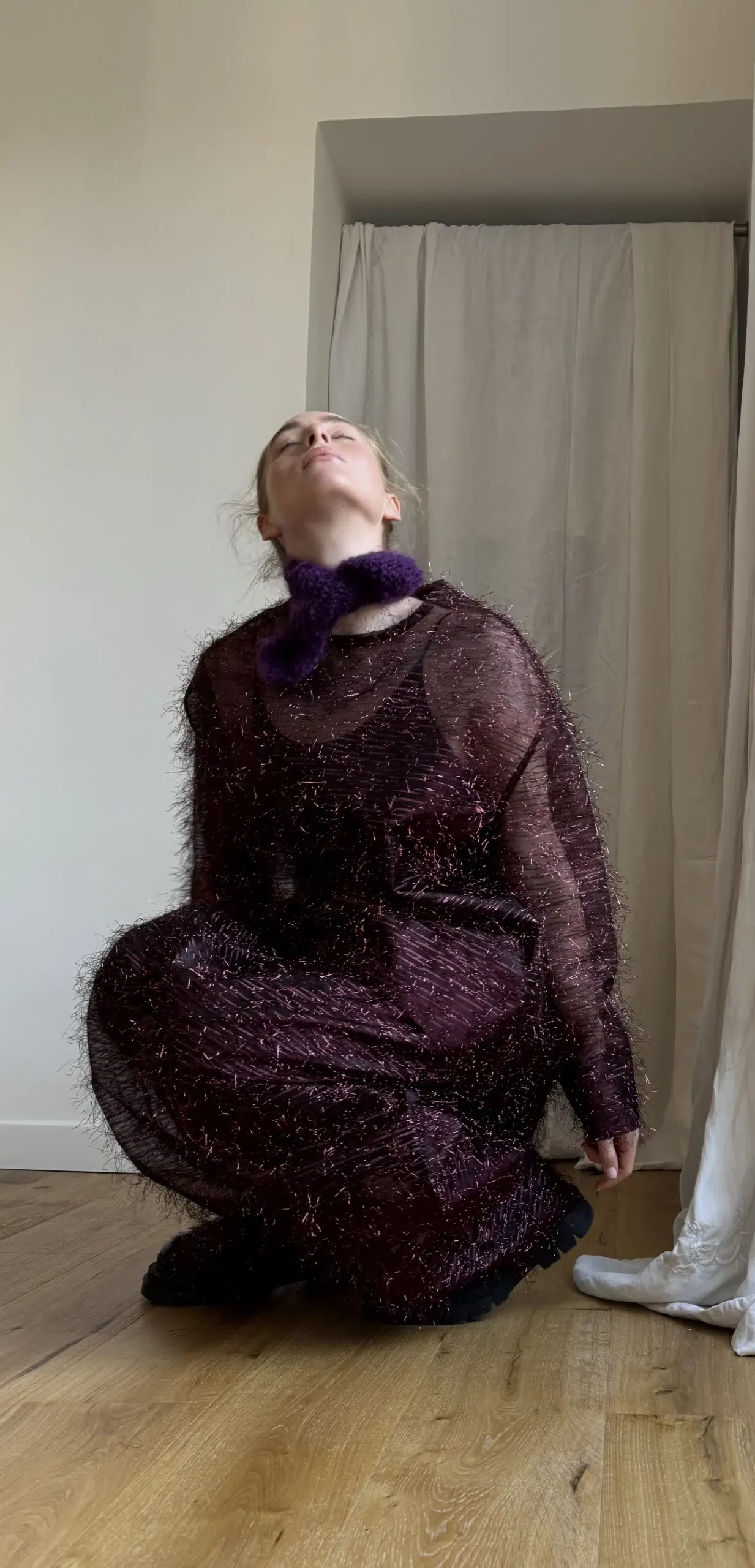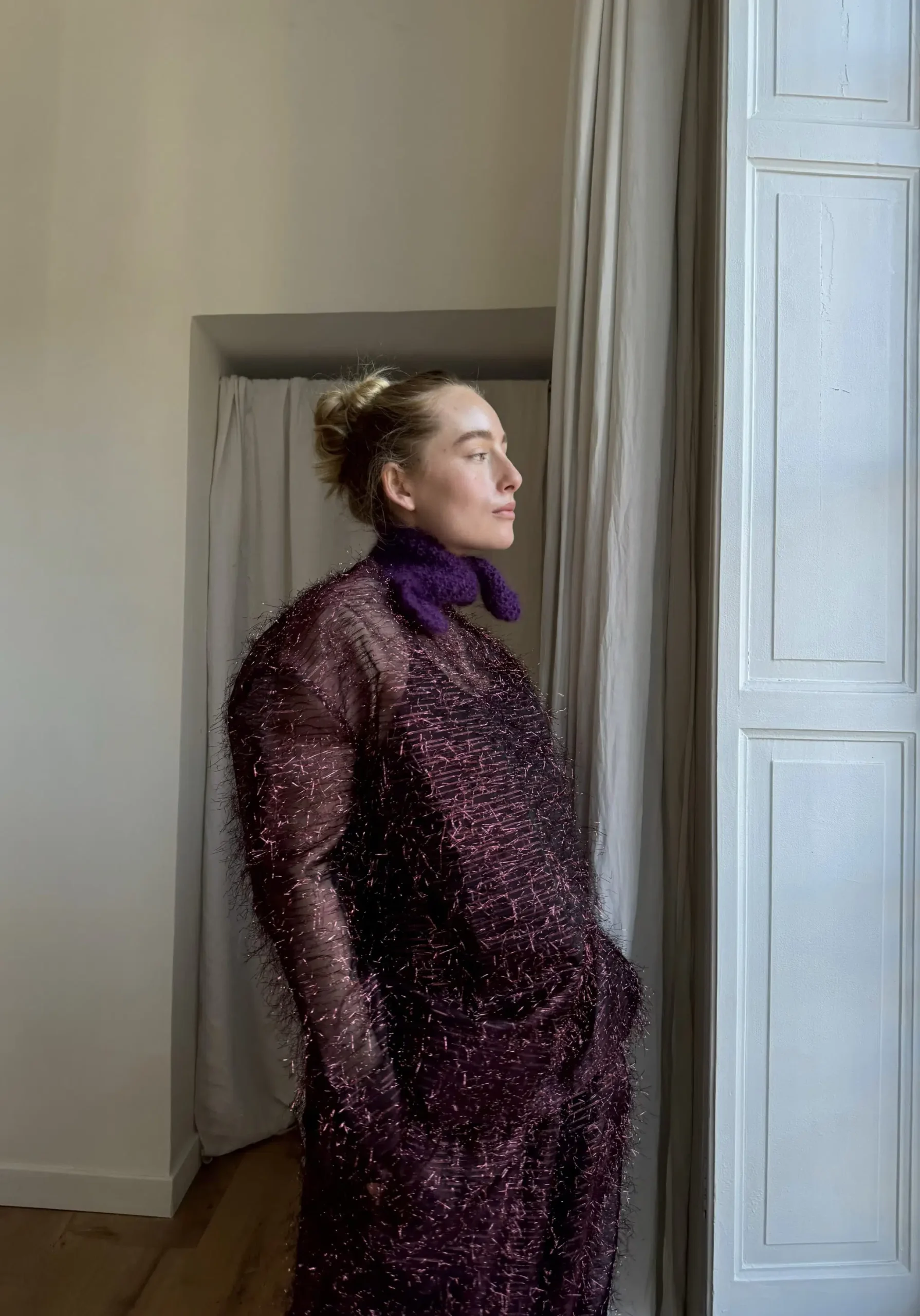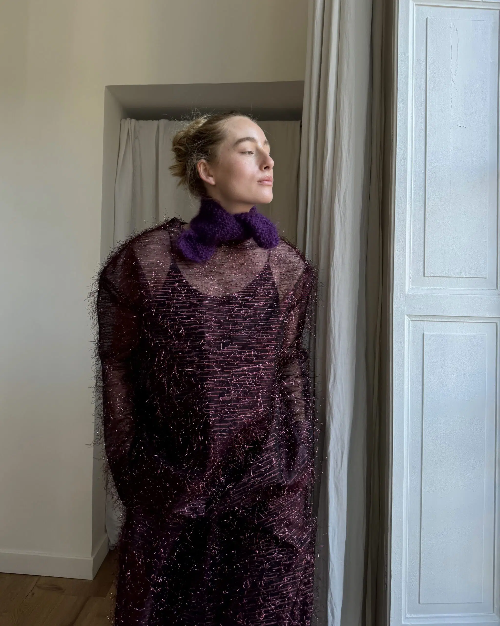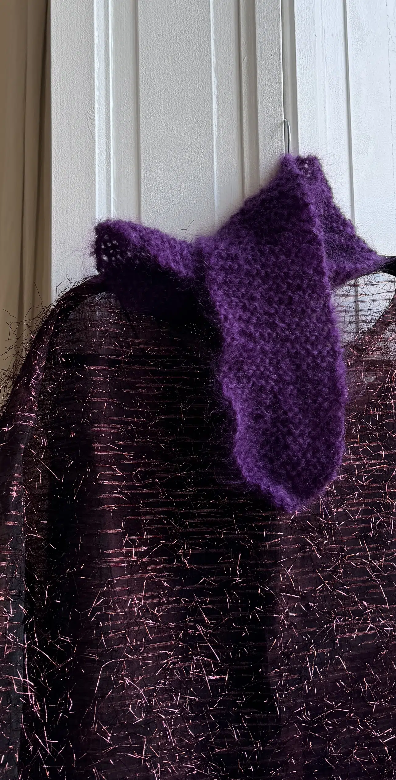 Tour de cou tricoté main en kid mohair violet. Doux tel un câlin. PIÈCE UNIQUE
