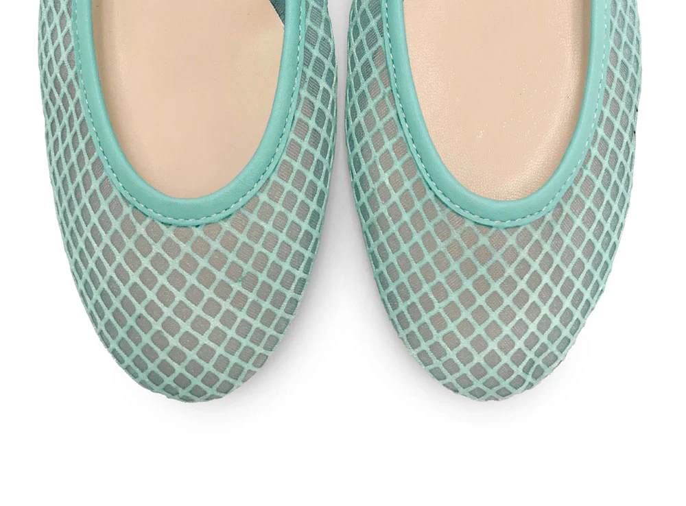 La linea di scarpe TT GO GREEN Collection fa parte della ricerca di BallereTTe verso soluzioni sempre più eco friendly, con l’utilizzo di materiali circolari e una produzione a basso impatto ambientale. Tutto questo mantenendo inalterato lo stile, la qualità artigianale e l’incredibile comodità dei prodotti. L’edizione GREEN di questo modello di ballerine Colonna è stata realizzata in un tessuto riciclato mesh trasparente con micro rete in rilievo tono su tono, inoltre la produzione avviene in stabilimenti italiani alimentati da energia rinnovabile. Le scarpe sono caratterizzate da una linea classica e aggraziata con punta tonda e tacco basso di 0,5 cm. Le ballerine eco-friendly in mesh colore acqua hanno bordino in pelle tono su tono. La calzata è comoda e versatile con sottopiede in pelle. Le ballerine in tessuto eco-friendly sono confezionate in una scatola di cartone al 100% riciclato e ti verranno consegnate insieme alla nostra moderna ed elegante dust bag in tessuto idrorepellente con fibre ricavate dalle bottiglie di plastica in PET. Un modo in più per aiutare a preservare il nostro bellissimo e colorato Pianeta!