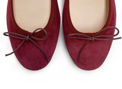 Il modello Ripa mantiene intatte tutte le caratteristiche di una ballerina classica, dal bordo in gros grain con fiocchetto sottile alla punta tonda, con l’aggiunta di un tacco di 2 cm di altezza sufficiente a dare più sostegno alla calzata. Il laccetto regolabile in cotone cerato, unito al sottopiede in pelle dai toni neutri e il rivestimento in cotone, ne fanno una calzatura estremamente confortevole ed elegante da indossare sempre. Le ballerine bordeaux scamosciate con tacchetto sono femminili e comode allo stesso tempo. Portabili in ogni momento della giornata si abbinano facilmente a pantaloni morbidi o a sigaretta e a gonne in tonalità classiche come il blu, nero e marrone. Per creare un look più moderno basta indossarle sotto il verde petrolio o un tono caldo come l’arancio o il giallo.