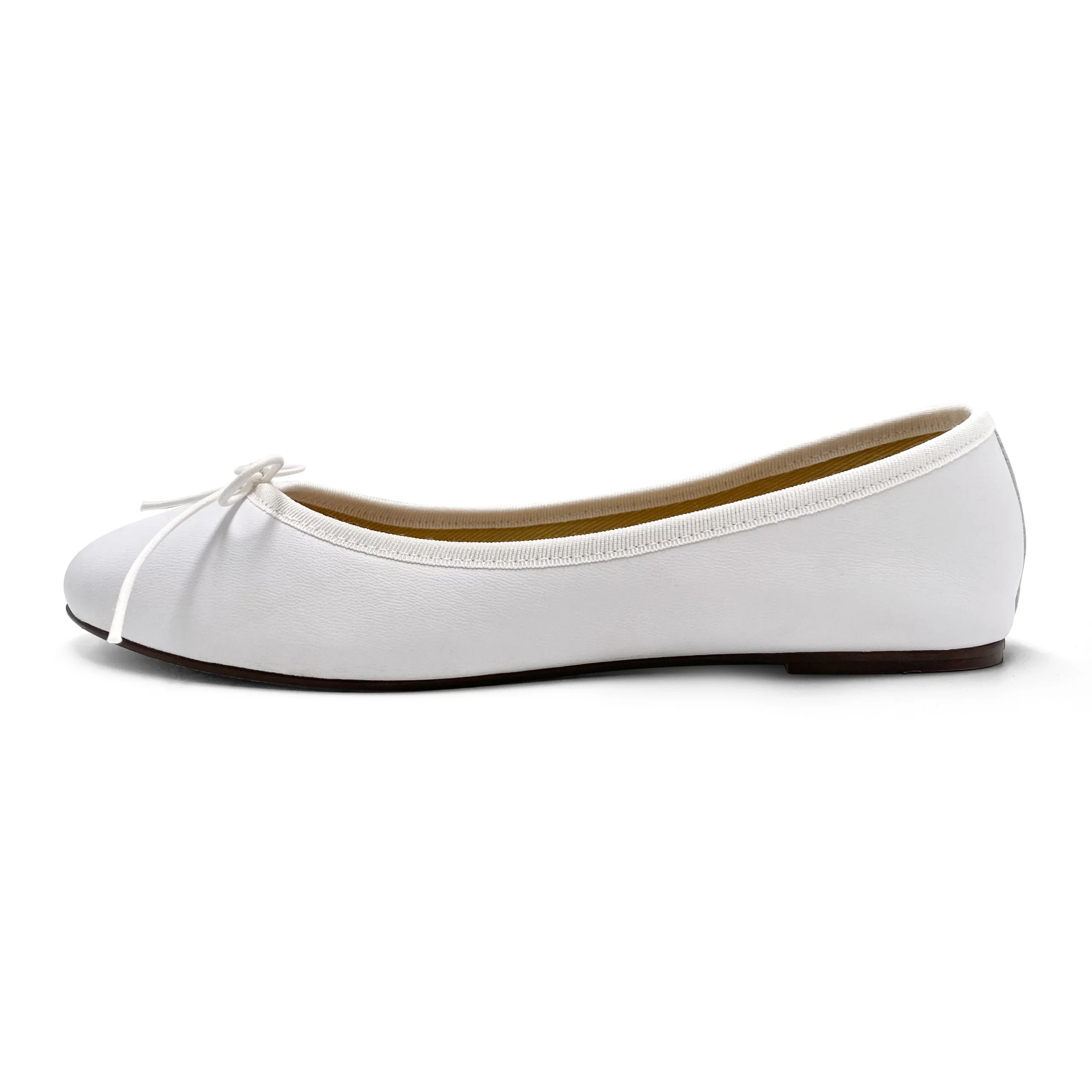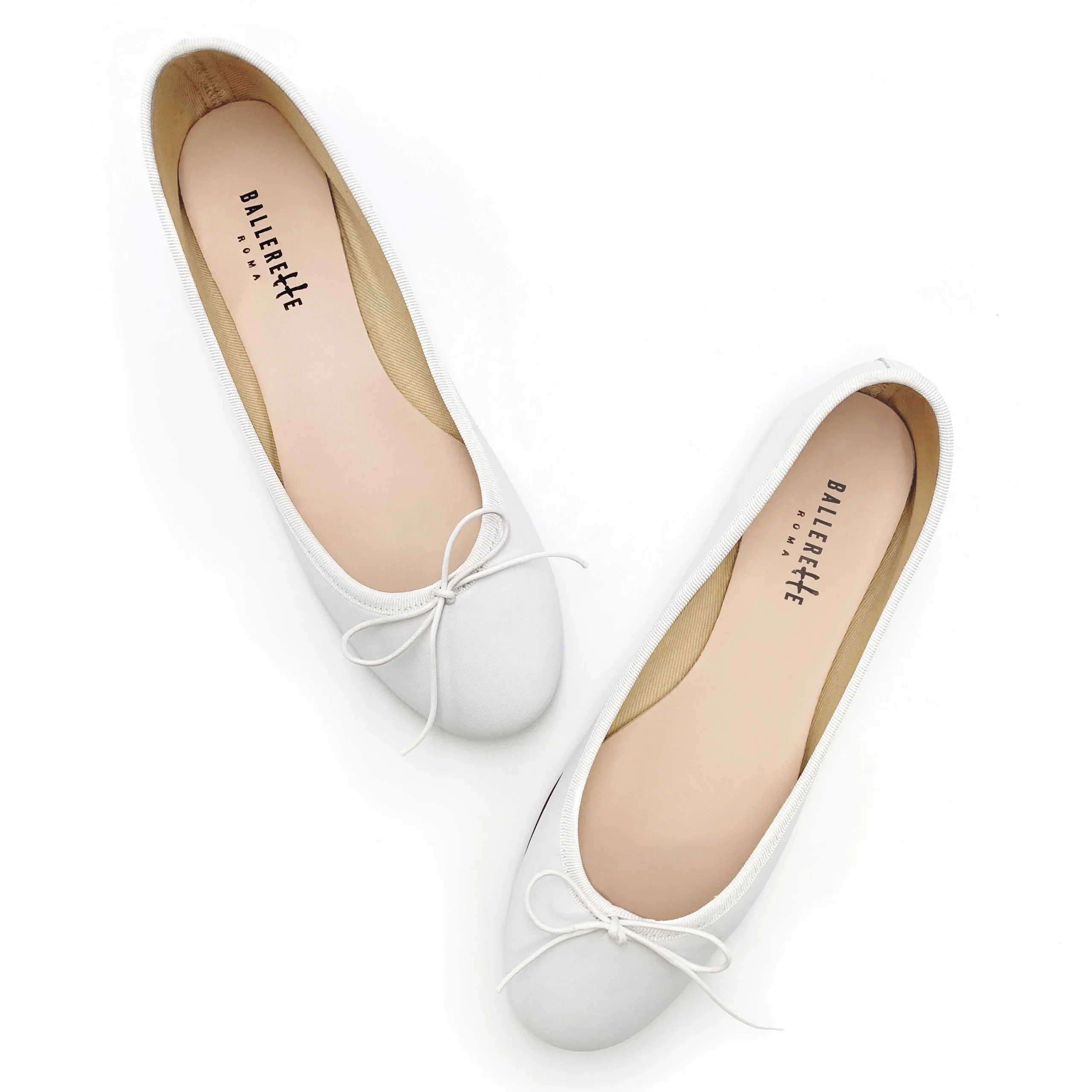 L’eleganza delle linee delle ballerine classiche Colonna è accentuata dalla delicata punta tonda e dalla rifinitura in gros grain ton sur ton della scollatura. Queste versatili ballerine con suola bassa e tacco di 0,5 cm sono estremamente comode grazie al laccetto regolabile, che adatta la calzata a qualsiasi piede, ed al sottopiede in pelle e la fodera in cotone, che permettono di indossarle con o senza calze durante tutto l’anno, anche per feste e cerimonie. Un paio di ballerine bianche in pelle è un accessorio estivo moderno e sofisticato, perfetto da abbinare a capi in denim, dalla classica minigonna alle casual overalls.