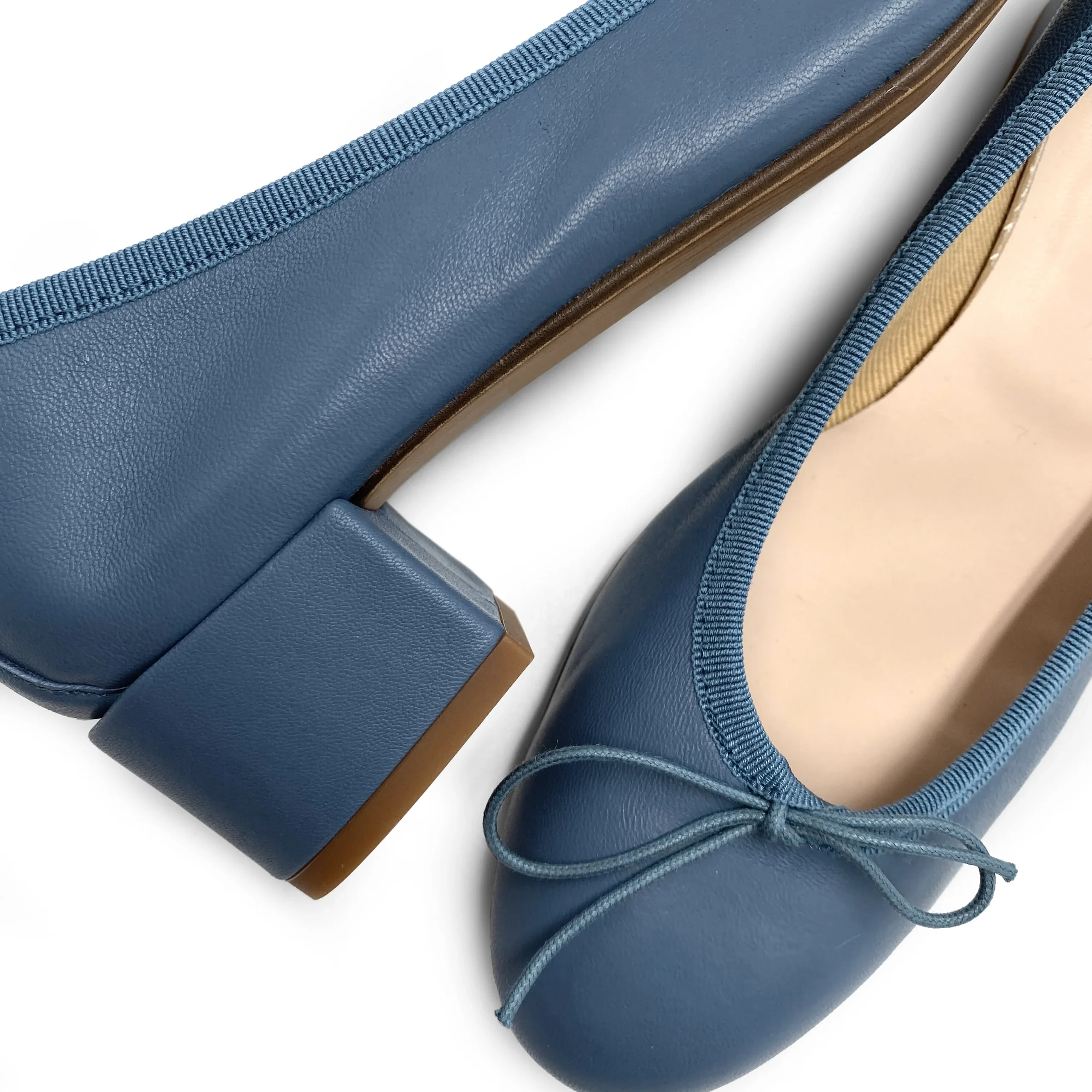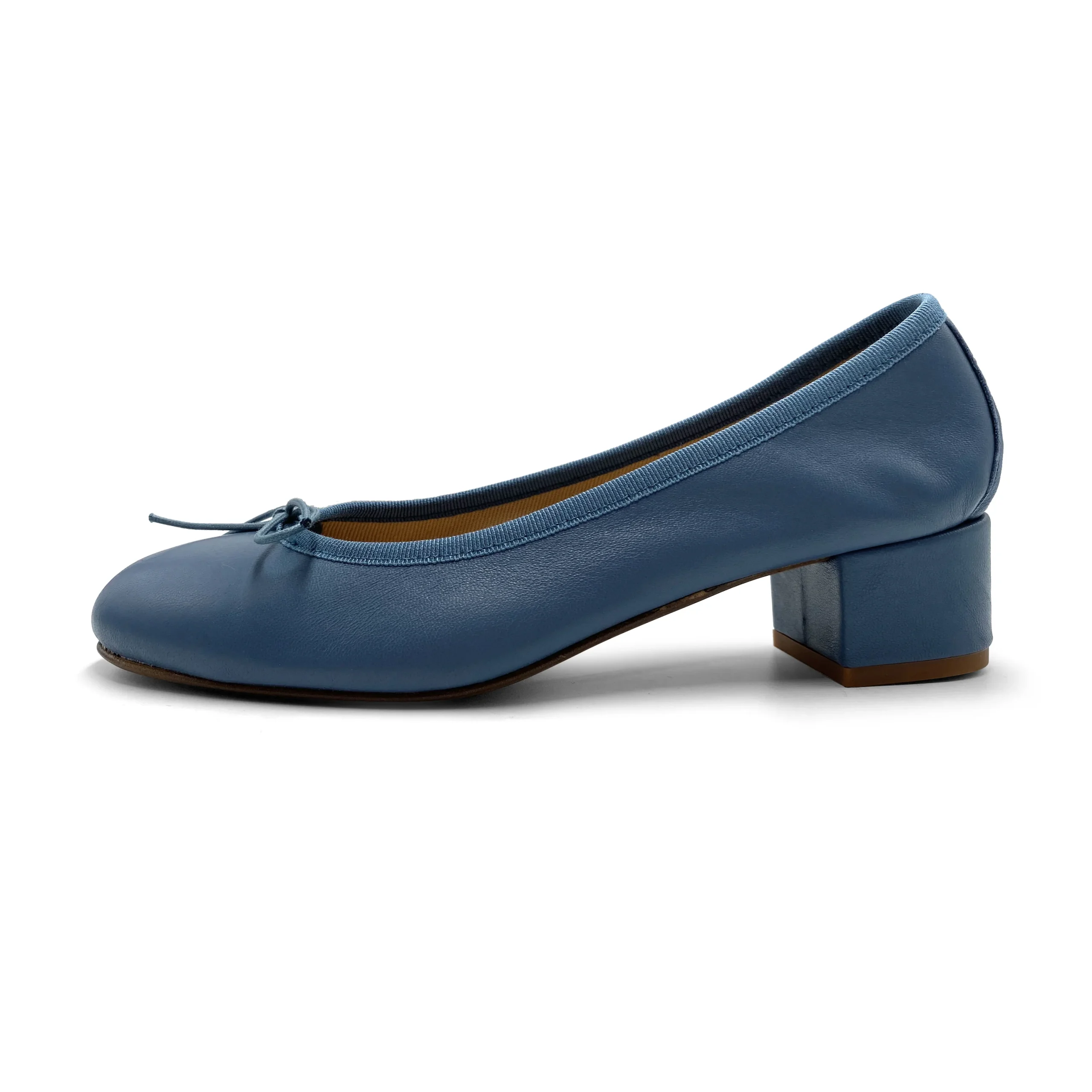 Le Aventino sono ballerine classiche a punta arrotondata e con tacco alto di 4 cm pensate per chi necessita di un piccolo rialzo per comfort o stile. La tomaia è in morbida pelle, il fiocco in punta consente di regolare l’aderenza al piede, in quanto il laccetto scorre lungo tutto il bordo di gros-grain, e la fodera è in cotone. La soletta interna ha una leggera imbottitura che rende più soffice la calzata. Questa variante in pelle celeste polvere ha una sfumatura elegante e allo stesso tempo versatile. Può essere abbinata con tinte pastello come, per chi ama i colori forti, l’arancio, il giallo e il rosso.