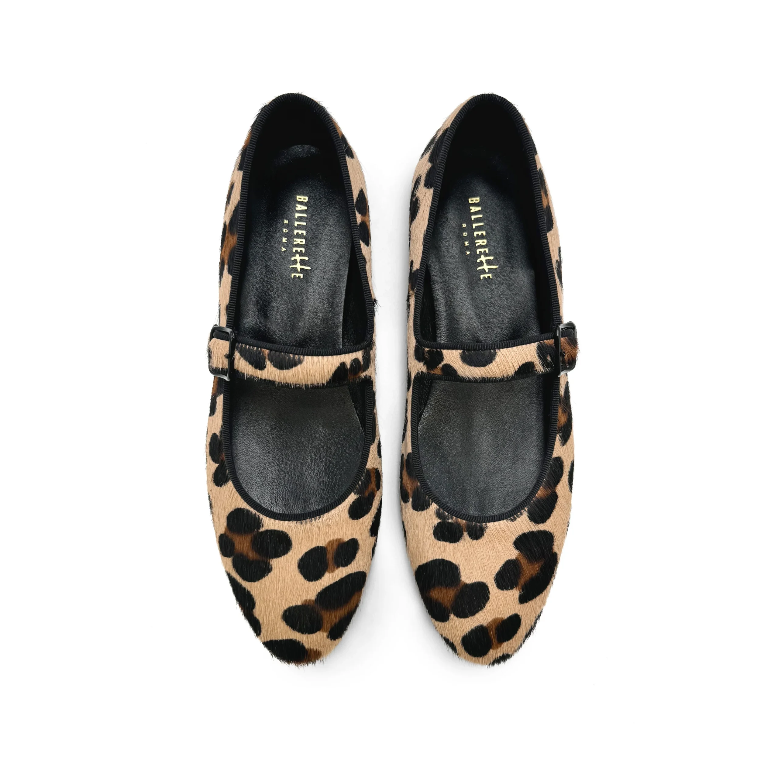 Le ballerine Trilussa sono delle Mary Jane con punta tonda e cinturino regolabile. Il bordo è in camoscio nero e sono realizzate in pelle con lavorazione cavallino a macchie leopardate marroni, nere e beige. La fodera interna è in pelle nera come il sottopiede. La suola in gomma light nera ha un comodo tacco di 2 cm di altezza. Queste ballerine animalier hanno una forte personalità, ma risultano al contempo verasatili e facilmente abbinabili ai tuoi look autunno inverno. La calzata comoda è adatta a tutte le tipologie di piede e potrai indossarle in ogni occasione.