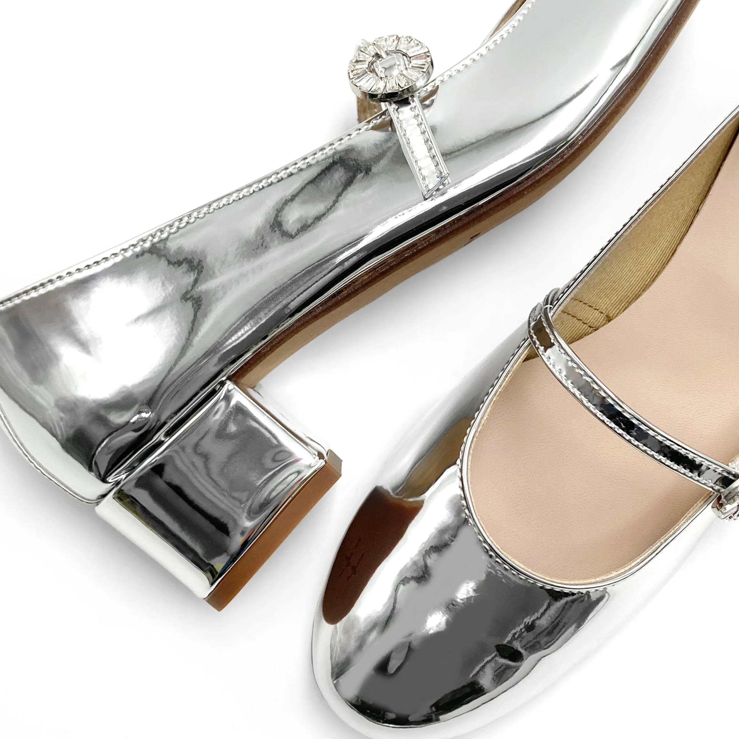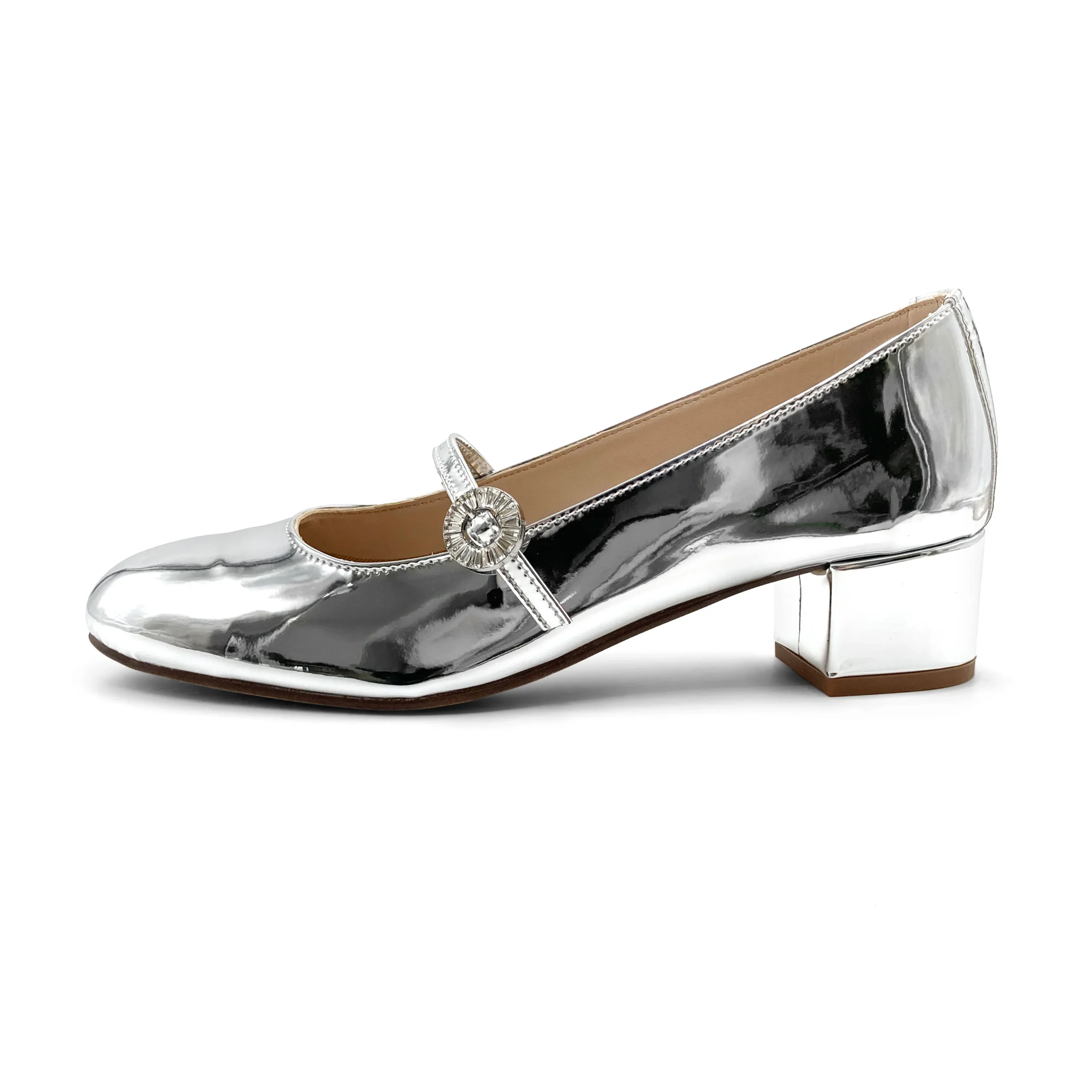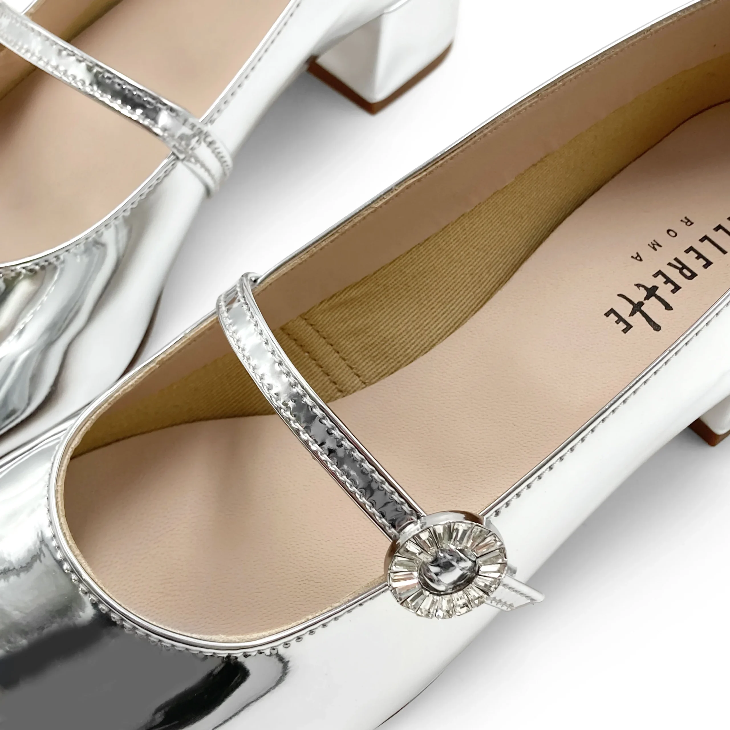 Le Aventino sono ballerine con tacco alto per chi ama la classicità e comodità del modello, ma desidera qualche cm in più di supporto. Questa versione è arricchita da un elegante cinturino sottile con fibbia gioiello in strass. Il tacco è di 4 cm di altezza, il sottopiede in pelle imbottita, per maggiore comfort, e la fodera in pelle. Classiche ed eleganti, le Mary Jane con tacco, sono una scarpa da indossare per un tocco di eleganza senza rinunciare al comfort. Realizzate in un’abbagliante vernice argento specchiata, queste ballerine da sera sapranno catturare tutti gli sguardi e dare un incredibile tocco di luce a tutti i tuoi outfit. Immaginale con un semplice abito in denim o con un tubino nero o lasciati conquistare dalla loro luce e indossale sotto tutti i colori che ti possono venire in mente. Le possibilità sono infinite.
