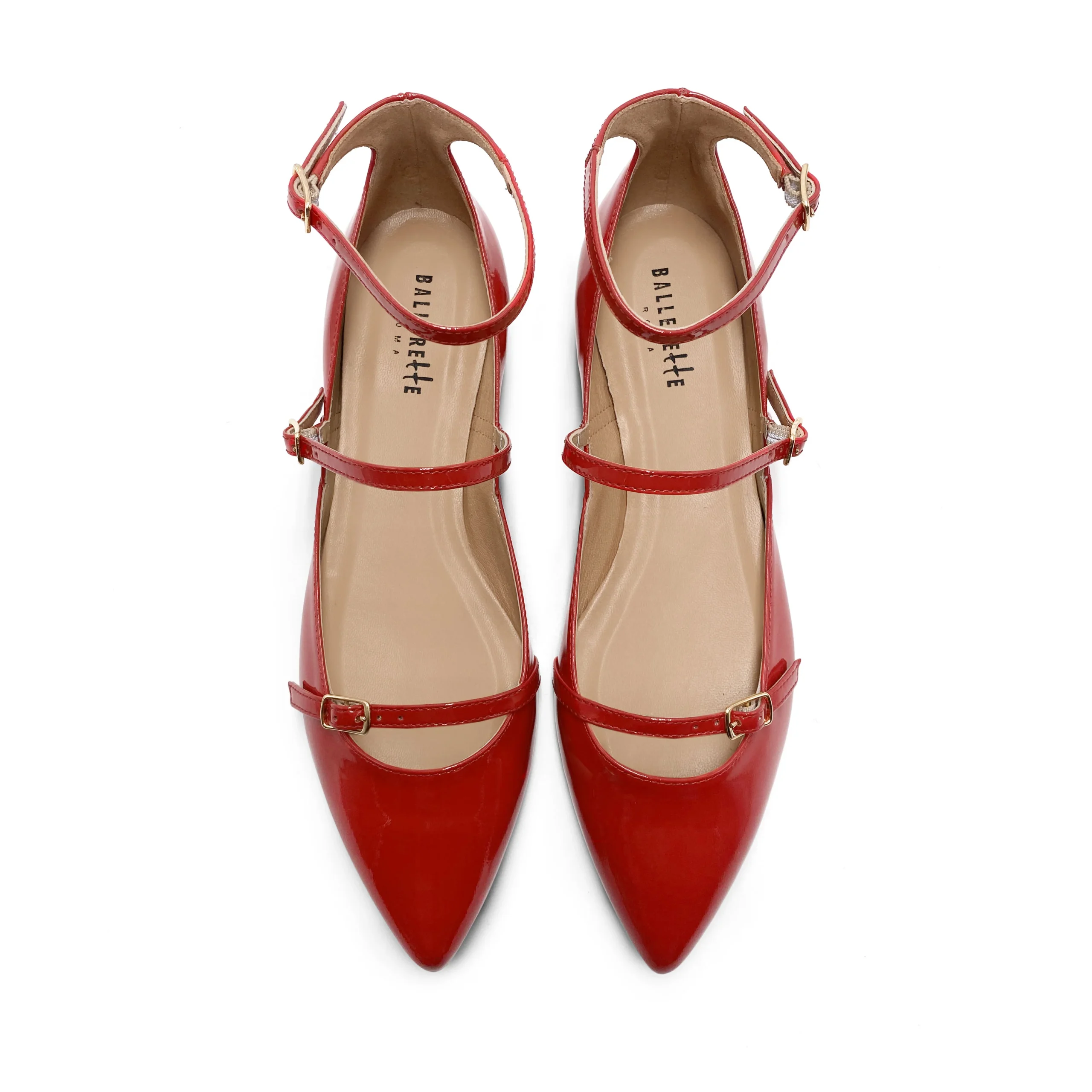 Uno dei modelli più femminili e sensuali della collezione BallereTTe sono le ballerine con tre cinturini modello Leonine. La linea, moderna e minimal, ha punta affusolata, un particolare scollo laterale e tacco basso. La fodera interna e il sottopiede sono in pelle, la suola è in cuoio. Queste ballerine Mary Jane con laccetti sono realizzate in pelle con vernice lucida rosso fuoco, una colorazione classica per le ballerine e sempre di grande impatto. Chi ama il rosso sa che è uno dei colori più facili d’abbinare perchè si sposa bene con i neutri e i pastelli come il cipria e il perla, da’ forza agli scuri come il nero e il bordeaux e risalta sotto le tinte più accese come il turchese e il viola.