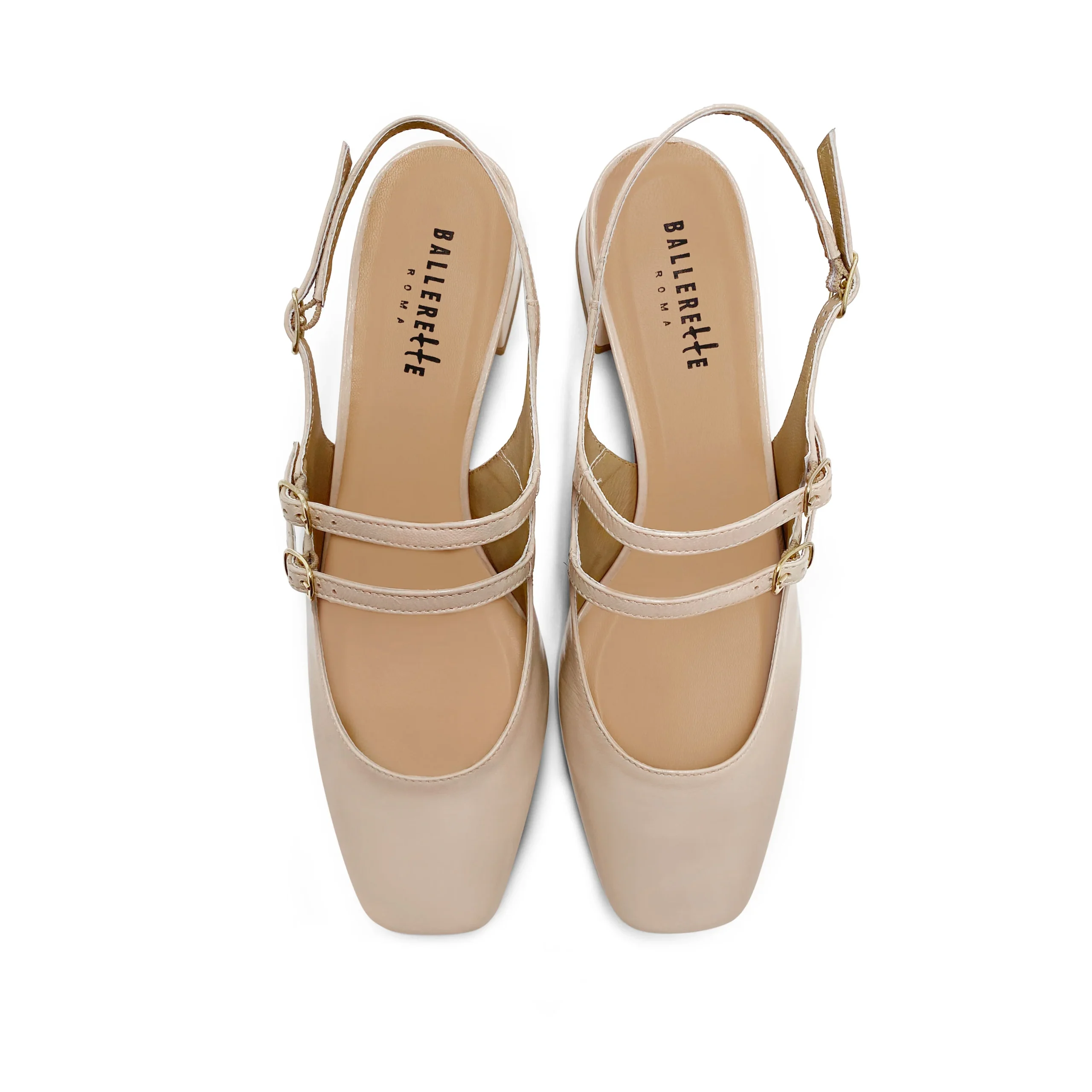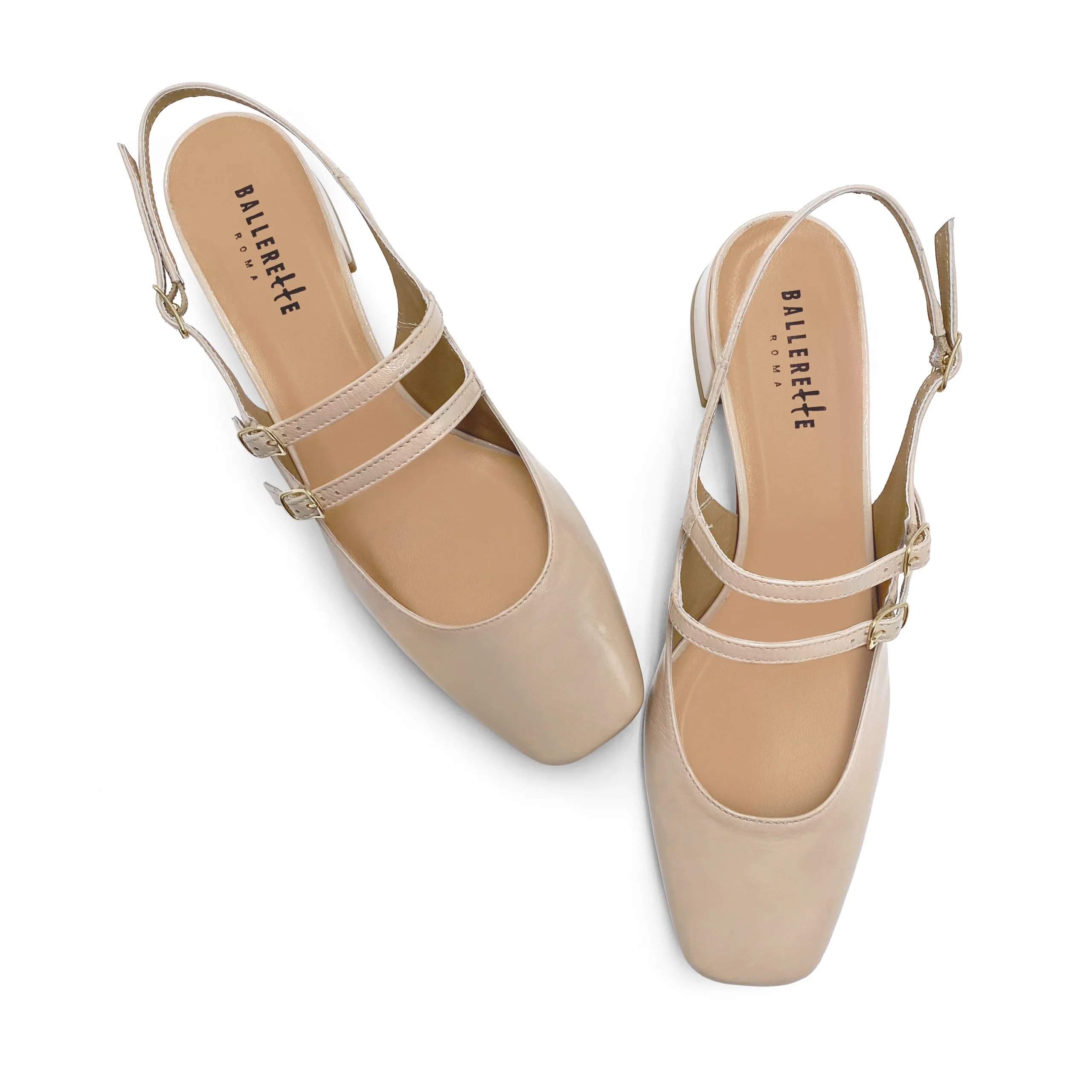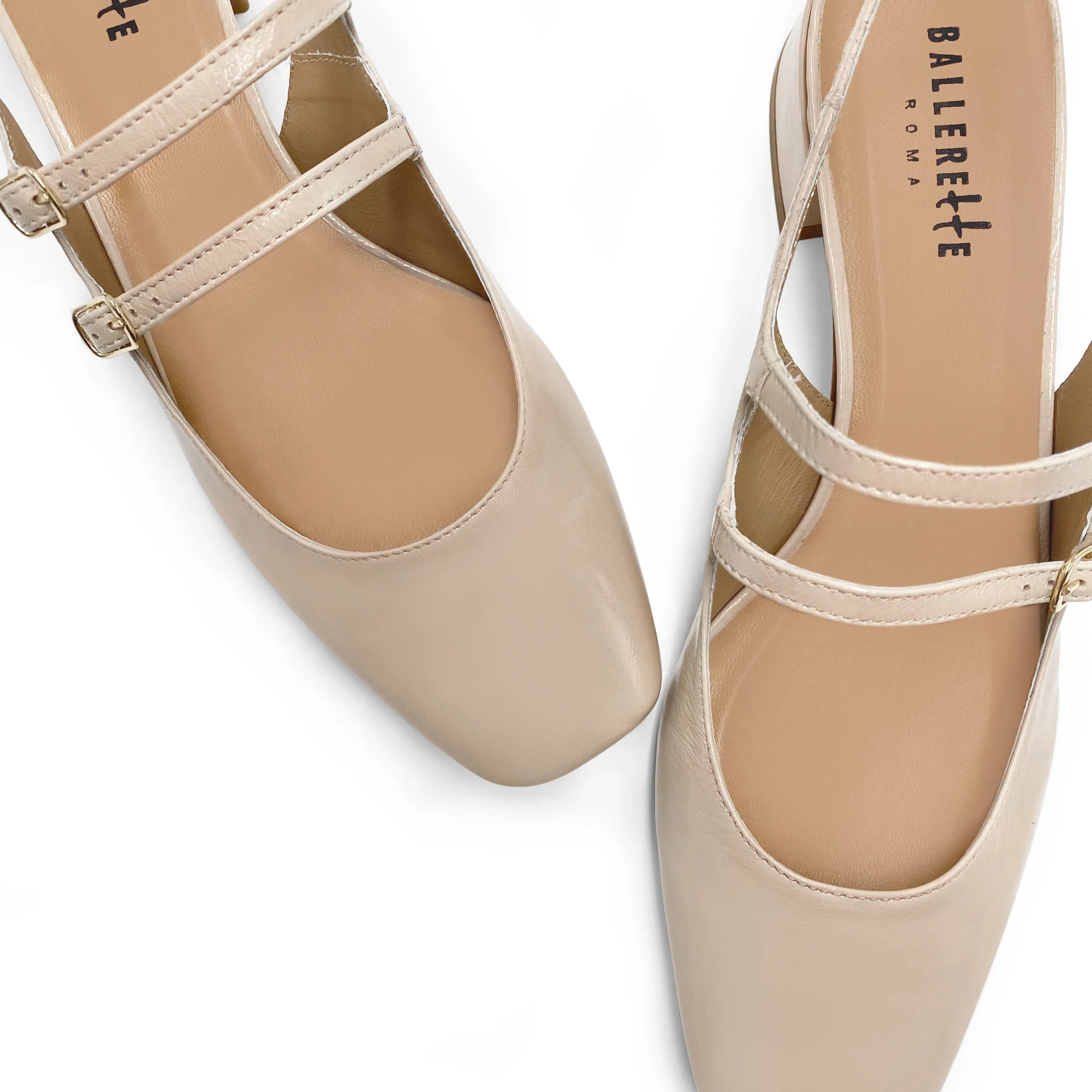 Soyez le premier à laisser votre avis sur “Ballerine slingback beige in pelle lucida con tacco”