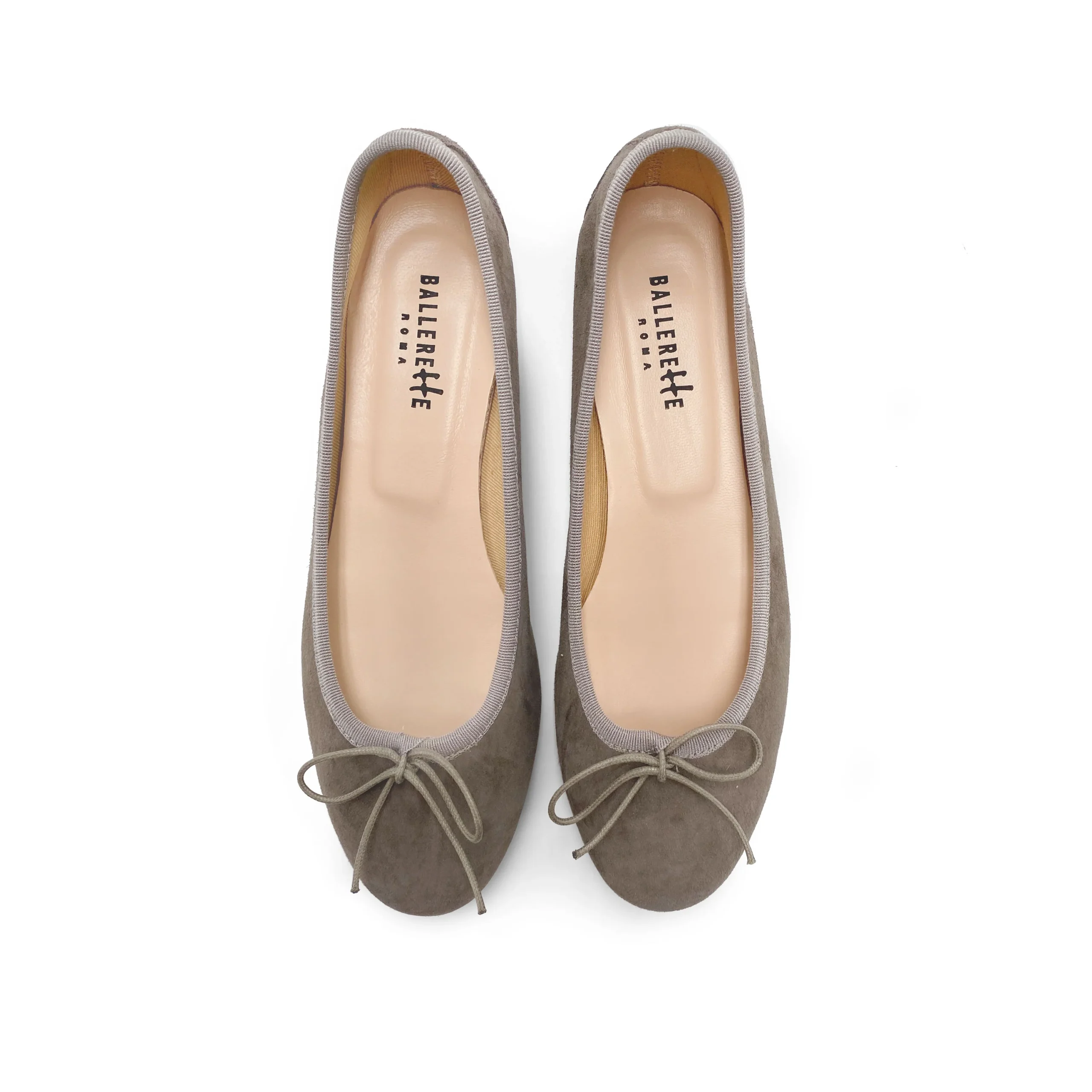 Versione con tacco delle classiche flats amate dalle donne di tutto il mondo le ballerine Ripa hanno punta arrotondata e tacco di 2 cm di altezza rivestito in camoscio. La pelle scamosciata le rende morbide e comode ma allo stesso tempo mantengono bene la forma grazie alla fodera in cotone e il laccetto regolabile in cotone cerato. Questo modello è in colore taupe, un mix chic tra marrone e grigio, che le rende estremamente versatili. Tutta la scarpa è bordata in gros grain e il sottopiede è in pelle dai colori neutri. La tonalità classica rende le ballerine scamosciate taupe un modello indispensabile da avere nel proprio armadio in quanto abbinabili facilmente a qualsiasi outfit e colorazione. Da provare assolutamente il connubio con il bianco o il rosso per un look raffinato oppure con una stampa geometrica o floreale per le più ecclettiche.