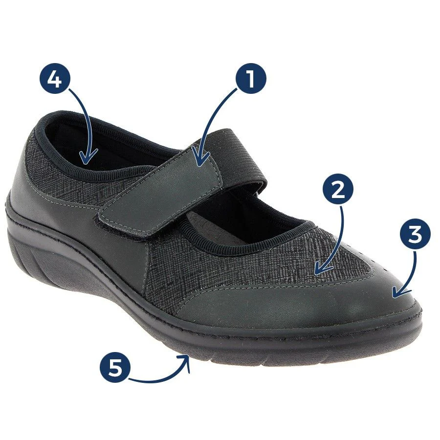 Élégance et confort orthopédique réunis dans la basket Virtuel Noire, pour des pieds sensibles choyés au quotidien.