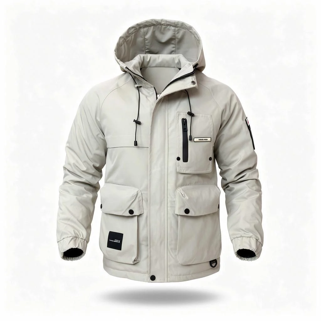 Son tissu technique imperméable protège du vent et de la pluie, tandis que sa coupe droite offre une liberté de mouvement idéale pour le quotidien.