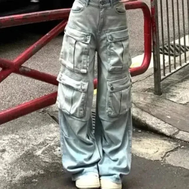 Ce jean cargo oversize est pensé pour celles qui veulent du style sans compromis sur le confort. Son denim clair délavé s’associe à des poches cargo massives pour une allure urbaine assumée. Chaque détail est travaillé pour faire de ce pantalon une pièce forte de ton dressing quotidien.