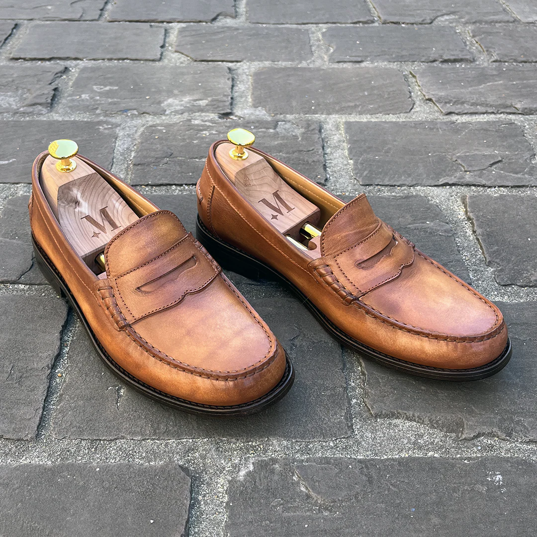 - Conseils d’entretien – Cirez vos souliers avec du cirage adapté tous les 6 à 7 ports. N’oubliez pas de glisser des embauchoirs dans vos mocassins préférés quand ils ne sont pas à vos pieds.