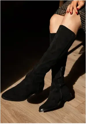 KAOMI est une botte en velours, stretch qui épouse parfaitement vos jambes. Son talon plat permet de les porter du matin au soir, grâce à elle, vous serez chic et élégante en permanence.