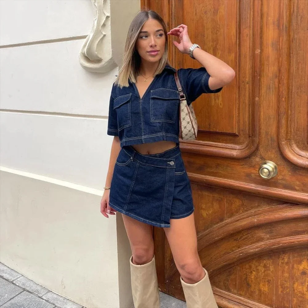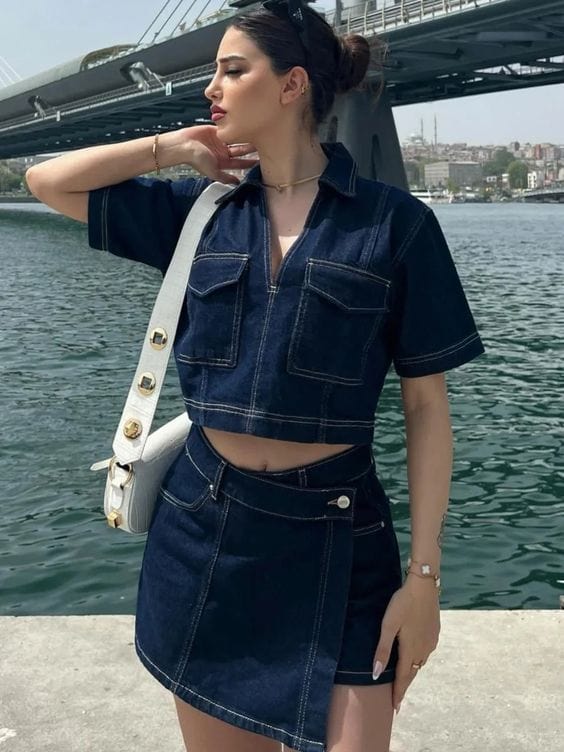 Ce ensemble deux pièces structuré combine modernité et praticité. Son design travaillé et sa coupe flatteuse font de lui une valeur sûre pour composer des tenues à la fois sobres et impactantes. Un indispensable du vestiaire féminin contemporain.