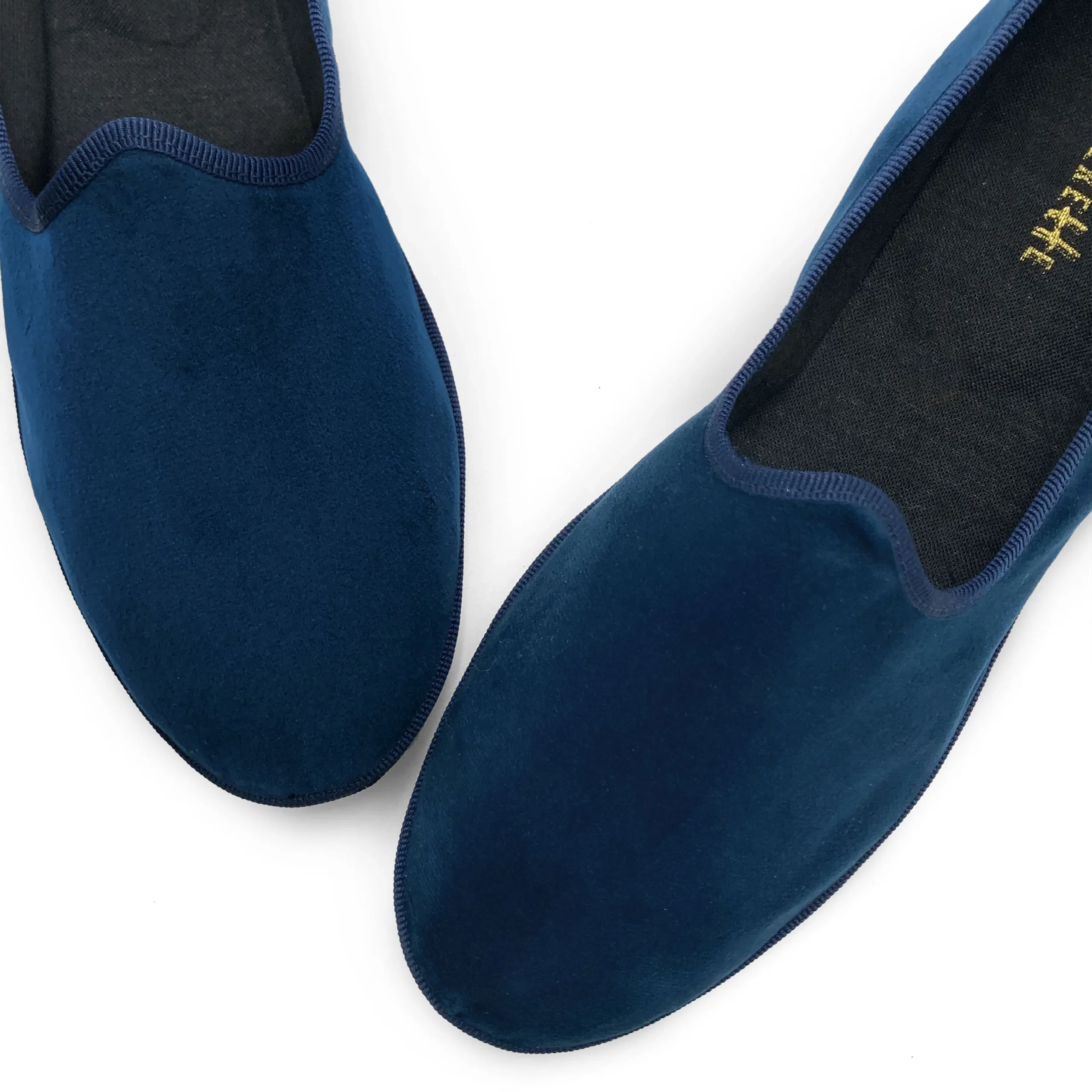 Le friulane, o furlane, o ancora « scarpets » sono scarpe della tradizione veneta realizzate a mano in Italia che si contraddistinguono per comodità, eleganza e versatilità. Questo modello d’origine antica è realizzato in morbido e lussuoso velluto di colore blu intenso con un particolare e innovativo trattamento antimacchia e idrorepellente, bordo in gros grain in tinta, fodera e sottopiede in cotone naturale, suola in gomma cucita. Le friulane in velluto blu da donna sono un modello da indossare in ogni occasione e stagione, sia con calze che a piede nudo. Chic e al tempo stesso informali possono essere portate di giorno con un bermuda in lino naturale e camicia a righe celesti o di sera con lungo un abito in satin dai colori accesi.