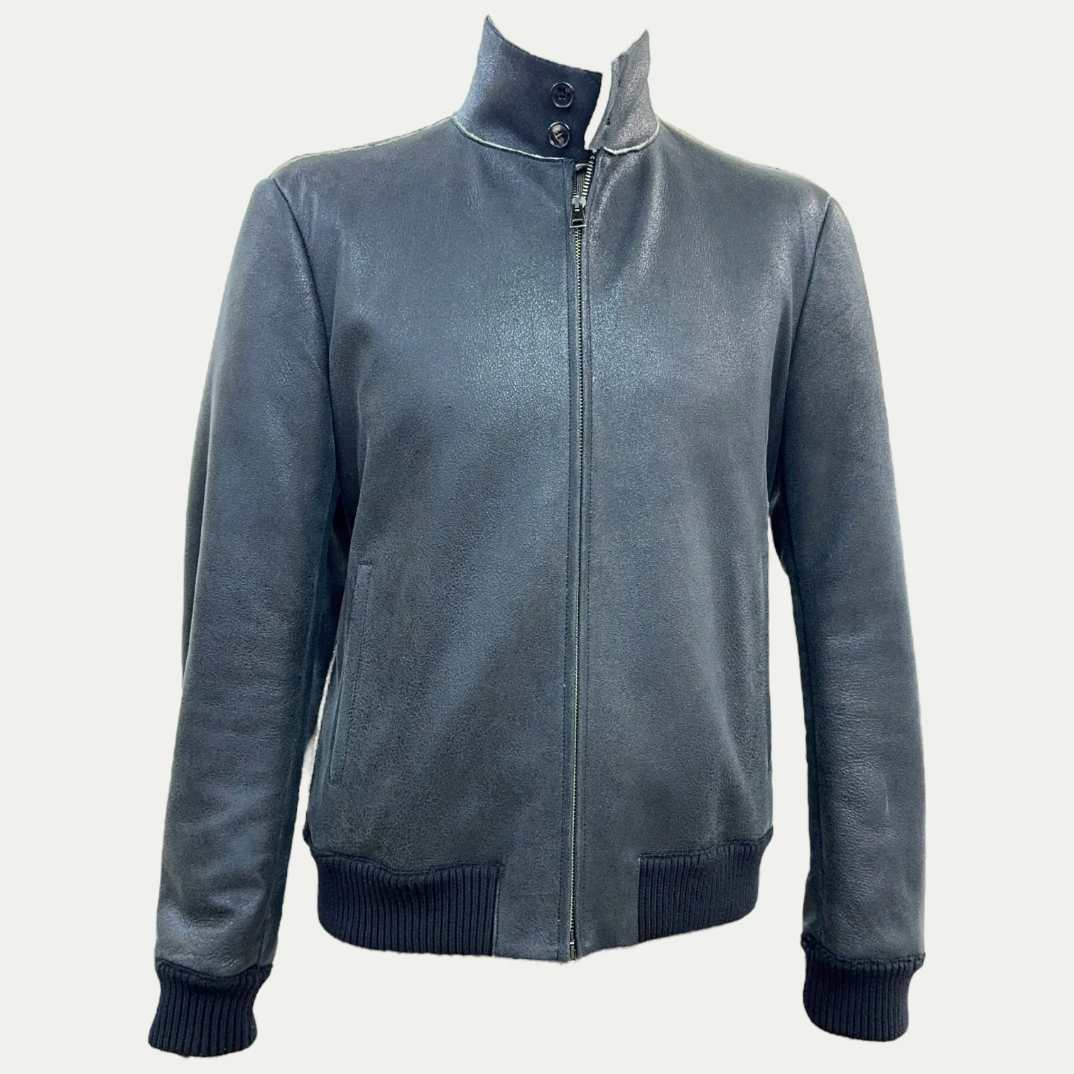 Le cuir de chèvre utilisé pour ce blouson se distingue par sa texture légèrement grainée, qui confère un caractère unique à chaque pièce. Ce cuir de haute qualité est résistant à l’usure, tout en étant assez souple pour garantir un confort optimal. Sa finition semi-mate ajoute une dimension raffinée, parfaite pour une pièce de caractère.