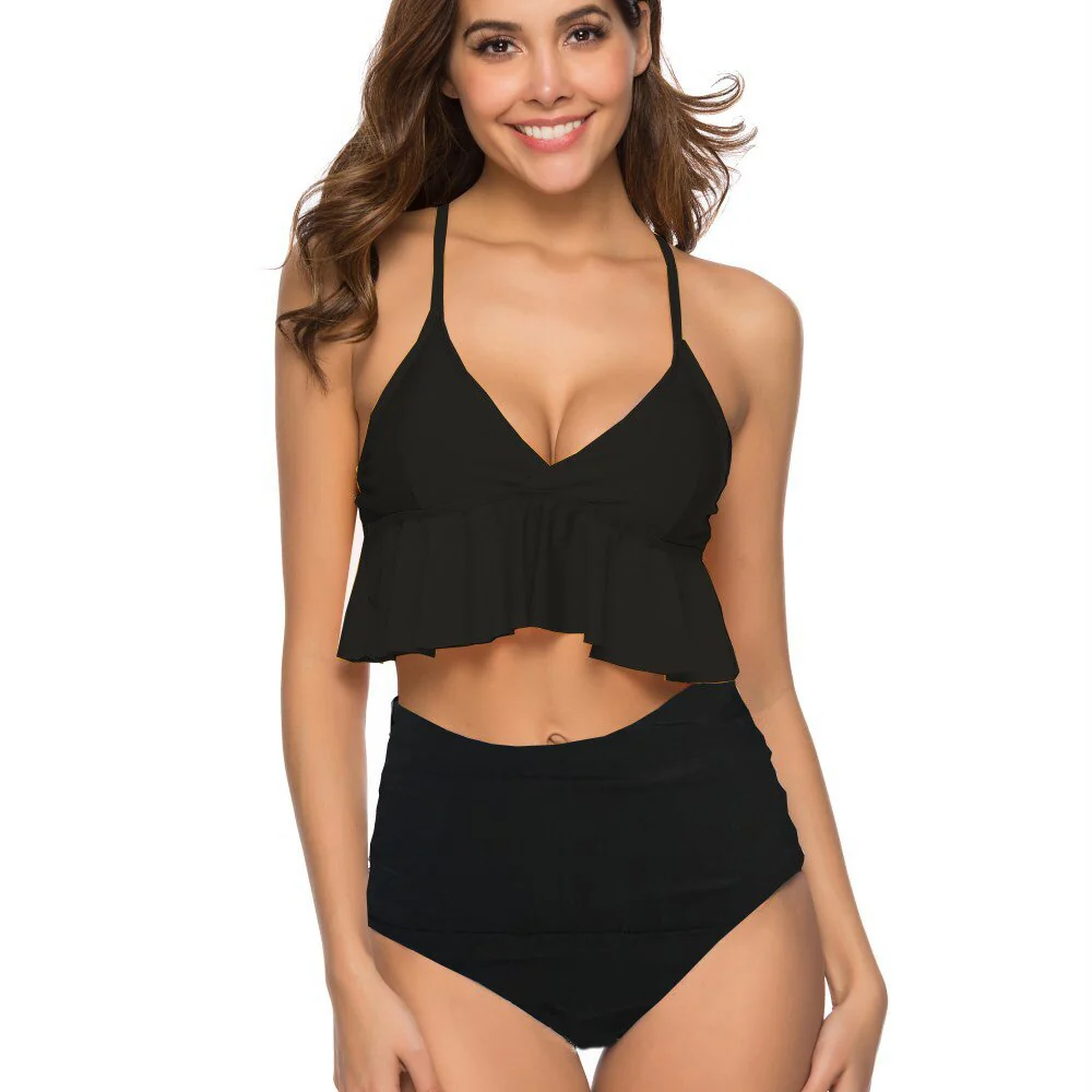 Le Maillot De Bain Vintage Pin Up est un modèle de bikini de taille haute Push Up. Il possède un design à volants de grande taille avec des petits plis. C’est un ensemble de deux pièces dont le haut possède une conception de crop top et le bas juste super sexy. Il possède un motif bien solide avec des imprimés floraux très durable et bien résistant.