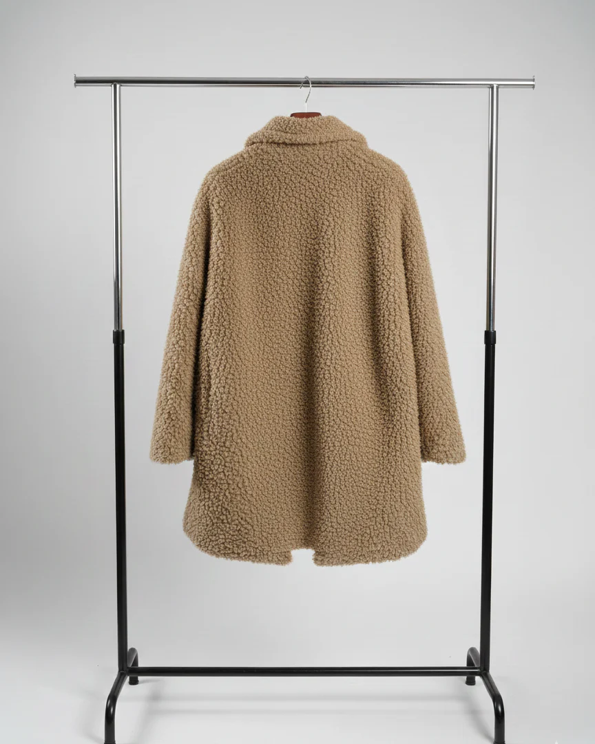 Ce manteau balance son camel intemporel à l’extérieur et son léopard sauvage à l’intérieur. Tu le mets, t’as la vibe working girl le jour, lionne la nuit. Bref, ça fait le taf sans effort. 🐆
