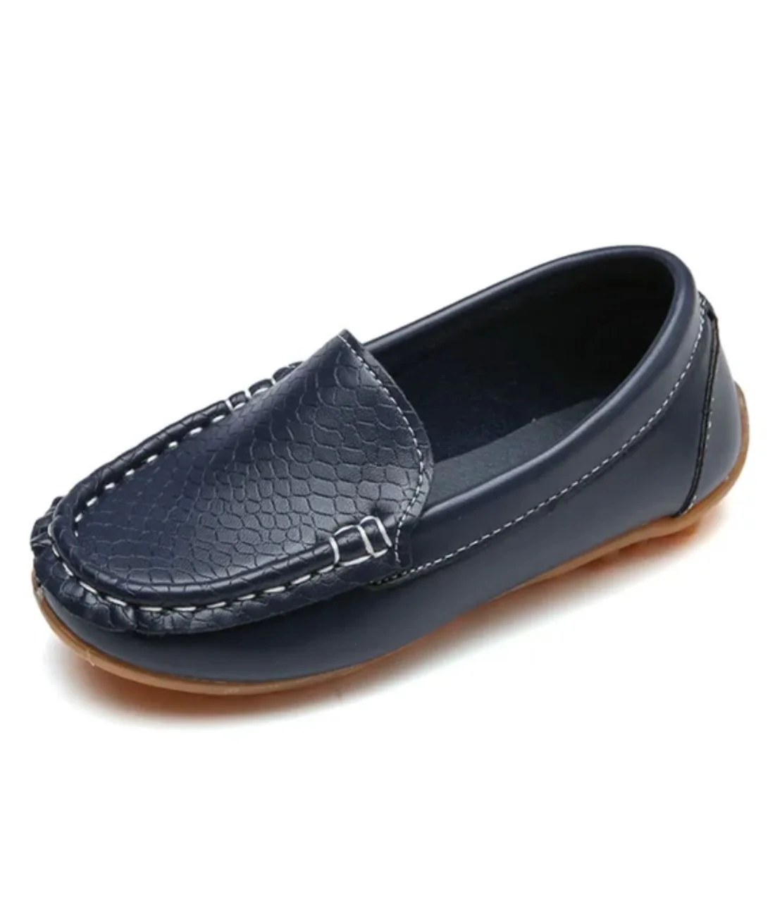 Conçus dans un simili cuir confortable et doublé d’une semelle externe en caoutchouc de couleur camel, notre modèle de mocassins en simili cuir est doté sur le plateau et l’empeigne, d’un motif embossé d’écailles discrètes. Un ajout classe et original, qui offre une texture grainée à la matière souple qu’est le simili cuir. Votre petit garçon va très certainement adorer porter sa nouvelle paire de chaussures pour aller à l’école ou rendre visite à la famille ! facile à enfiler, cela simplifiera grandement l’habillage parfois tumultueux chez les bambins.