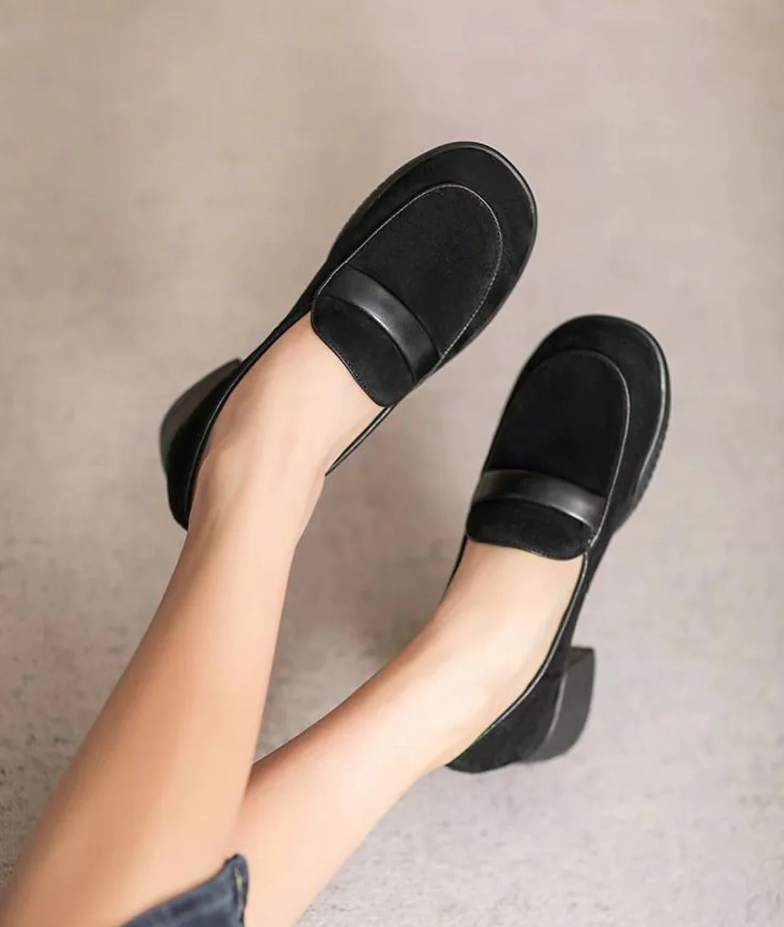 Redécouvre le mocassin avec une touche de modernité et de style grâce à ce modèle féminin en daim. Les mocassins noirs pour femme de cette collection exclusive allient élégance intemporelle et détails contemporains pour un look qui ne passera pas inaperçu. Parfait pour compléter une tenue chic en ville ou au travail, ces mocassins sont un incontournable de ta garde-robe.