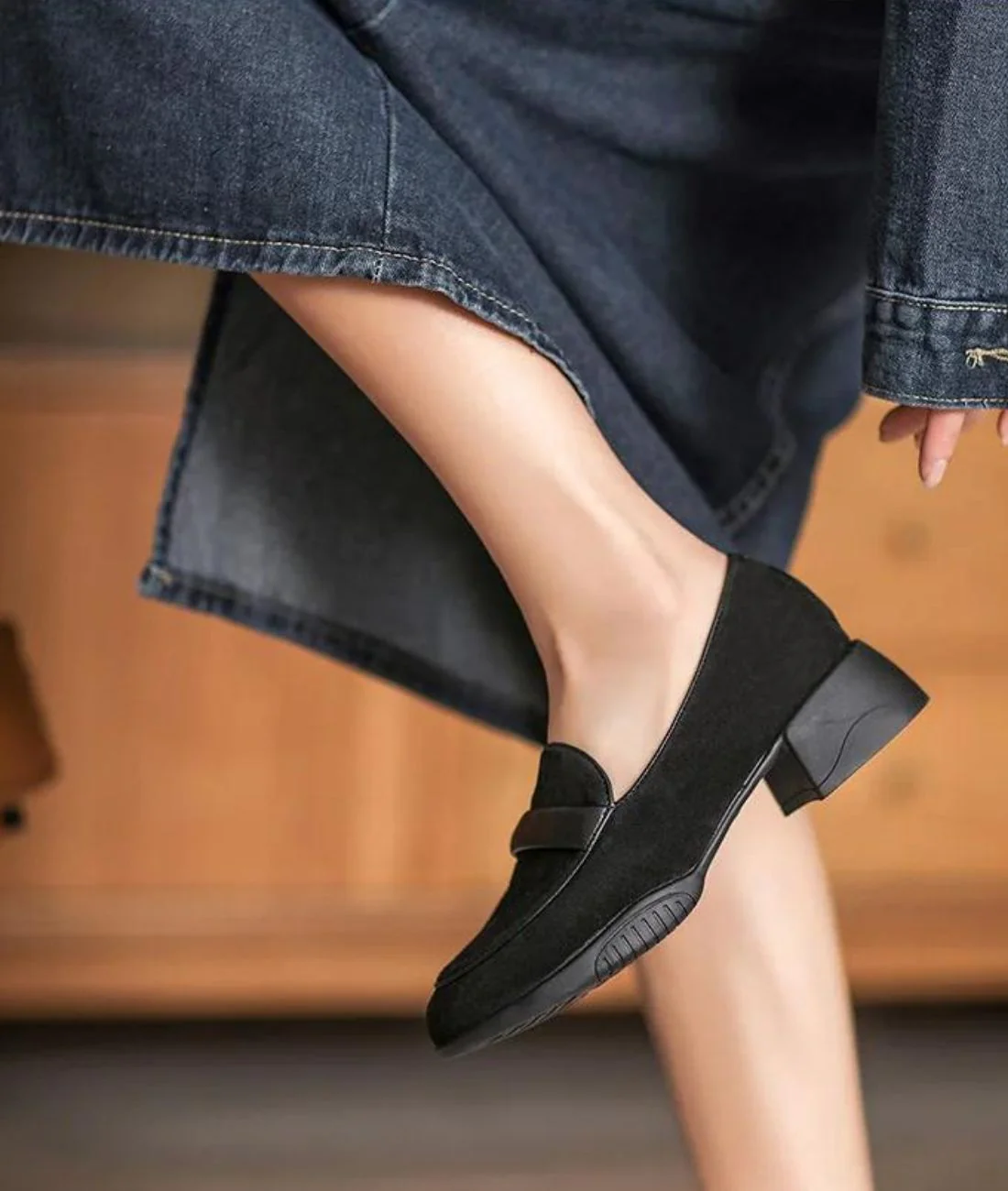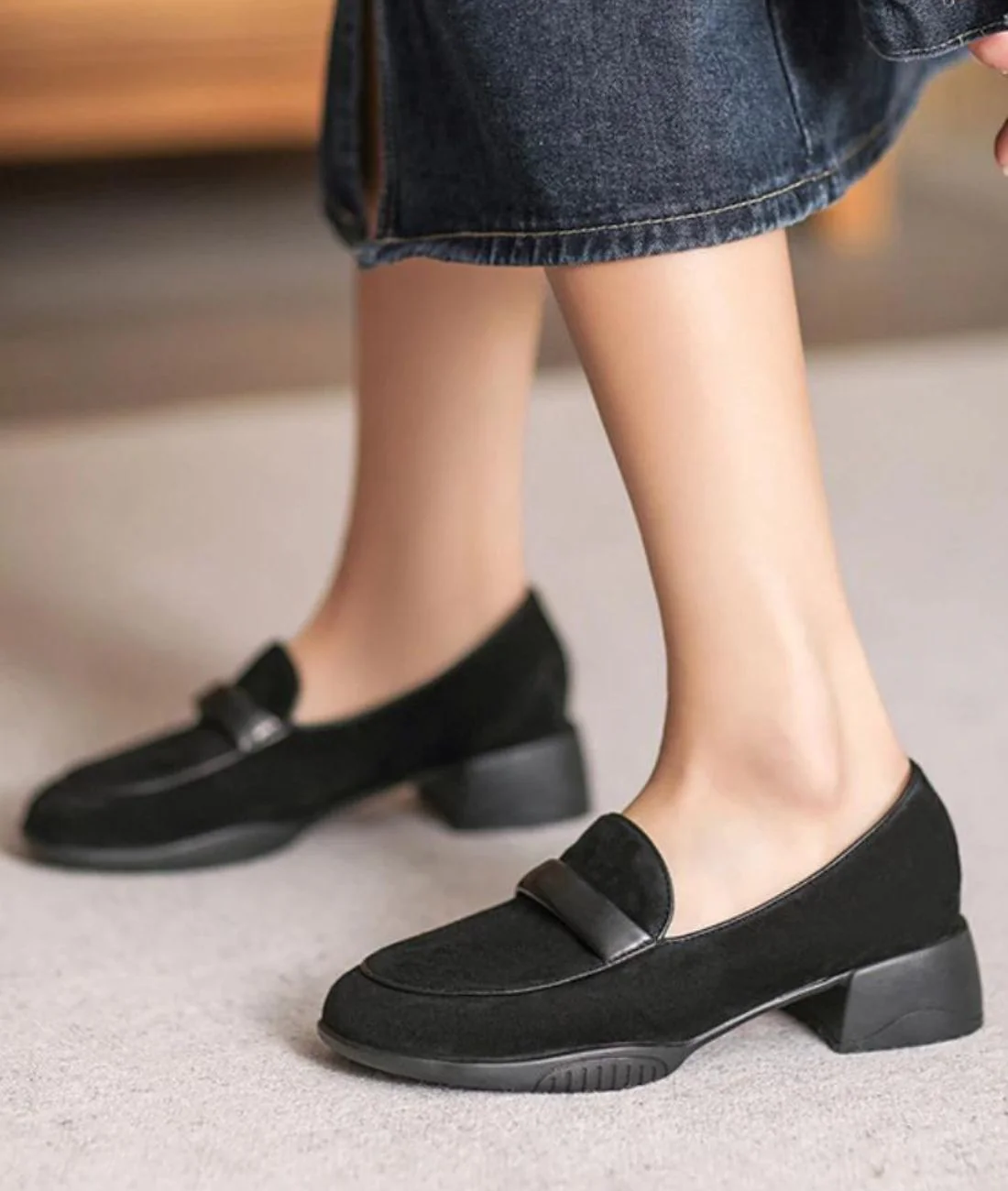Ce modèle féminin noir en daim réinvente le mocassin, avec son design intemporel et ses détails contemporains !