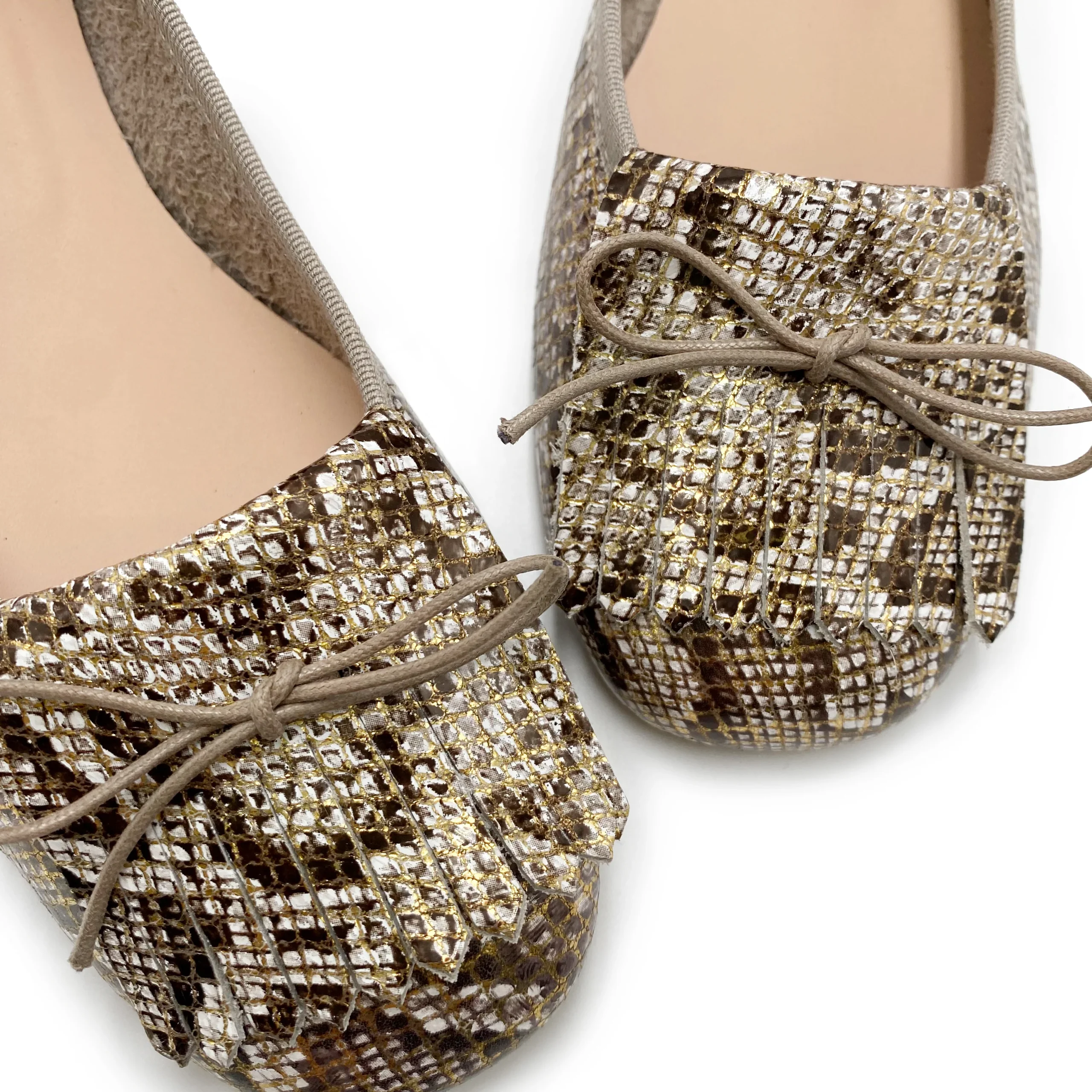 Il modello Pantheon è un elegante mocassino da donna dalla calzata comoda, con punta leggermente squadrata e un moderno tacco medio arrotondato di 2 cm. La tomaia è realizzata in pelle a stampa animalier dai toni neutri con dettagli oro che ne esaltano il disegno. I mocassini pitonati sono foderati in cotone e hanno sottopiede in pelle. Versatili e uniche, le potrai abbinare con tonalità neutre chiare o scure con accessori oro o con tinte forti a contrasto come il rosso, il verde, l’acqua.
