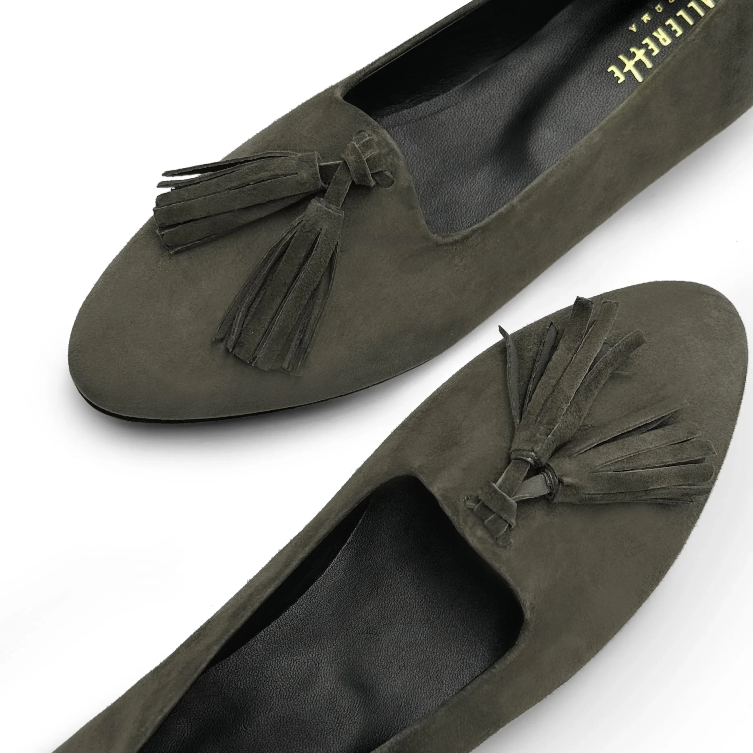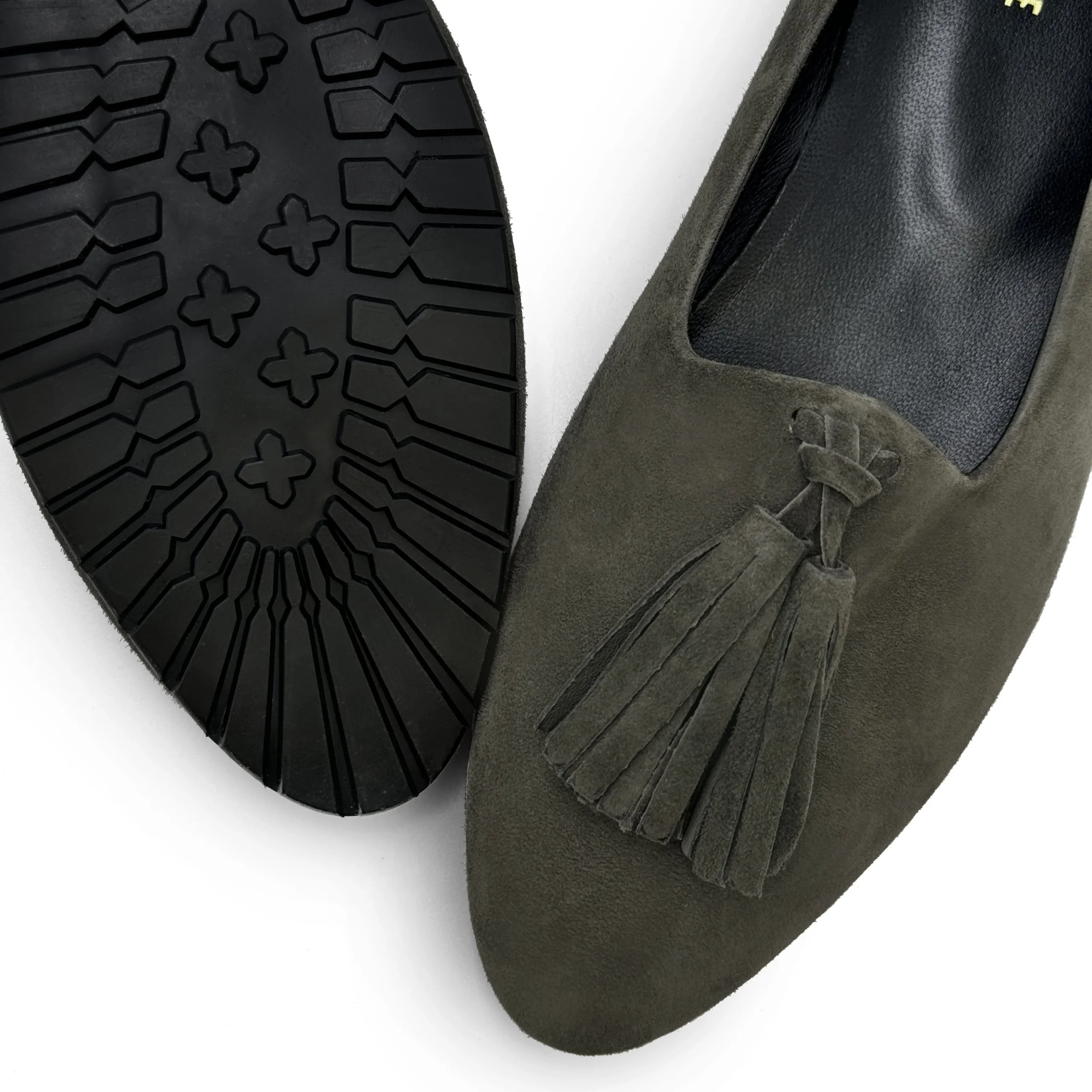 I Monserrato sono mocassini da donna in camoscio con nappine decorative in tinta che uniscono comfort ed eleganza in un’unica calzatura. Foderati internamente in pelle nera, presentano un tacco basso di 0,5 cm e una suola sottile in carrarmato leggero di colore nero, pensata per garantire stabilità e leggerezza. La scollatura con mascherina alta dona al piede una linea affusolata, contribuendo a slanciare visivamente la figura. In questa versione in camoscio verde bosco, si distinguono per il loro fascino sobrio e raffinato, perfetto per aggiungere un tocco sofisticato a ogni look. Versatili e ricercati, si abbinano perfettamente a un completo in tweed nei toni del beige, a pantaloni palazzo color panna con maglia a collo alto color cuoio, oppure a una gonna plissé color avorio abbinata a un dolcevita verde oliva. Ideali anche per outfit più audaci, possono essere indossati con un maxi abito floreale nei toni caldi dell’autunno o con un tailleur in velluto a coste bordeaux per un look vintage rivisitato. I Monserrato sono i mocassini perfetti per chi desidera creare combinazioni sempre nuove senza rinunciare allo stile e alla comodità.