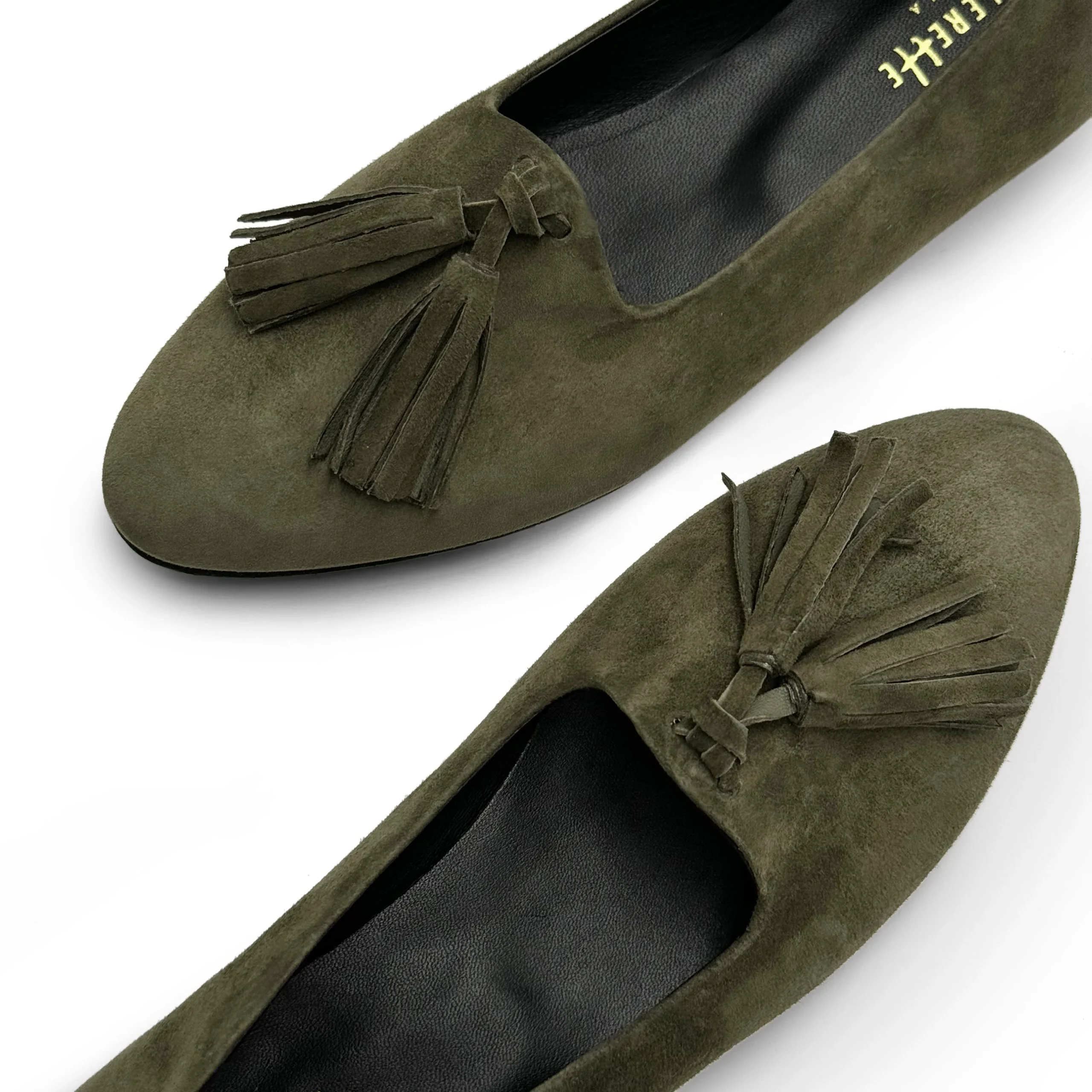 Mocassini da donna in camoscio con nappine in tinta, i Monserrato sono le scarpe da donna ideali per chi cerca un modello artigianale comodo e trendy. Foderati in pelle nera, hanno la suola in gomma nera leggera con trama a carrarmato. Grazie alla forma a punta e alla mascherina che accompagna bene il dorso del piede, questi mocassini rislutano particolarmente affusolati e sinuosi. Qui proposti nel colore verde oliva, sono perfetti per creare diversi abbinamenti e accompagnarti durante tutta la stagione.