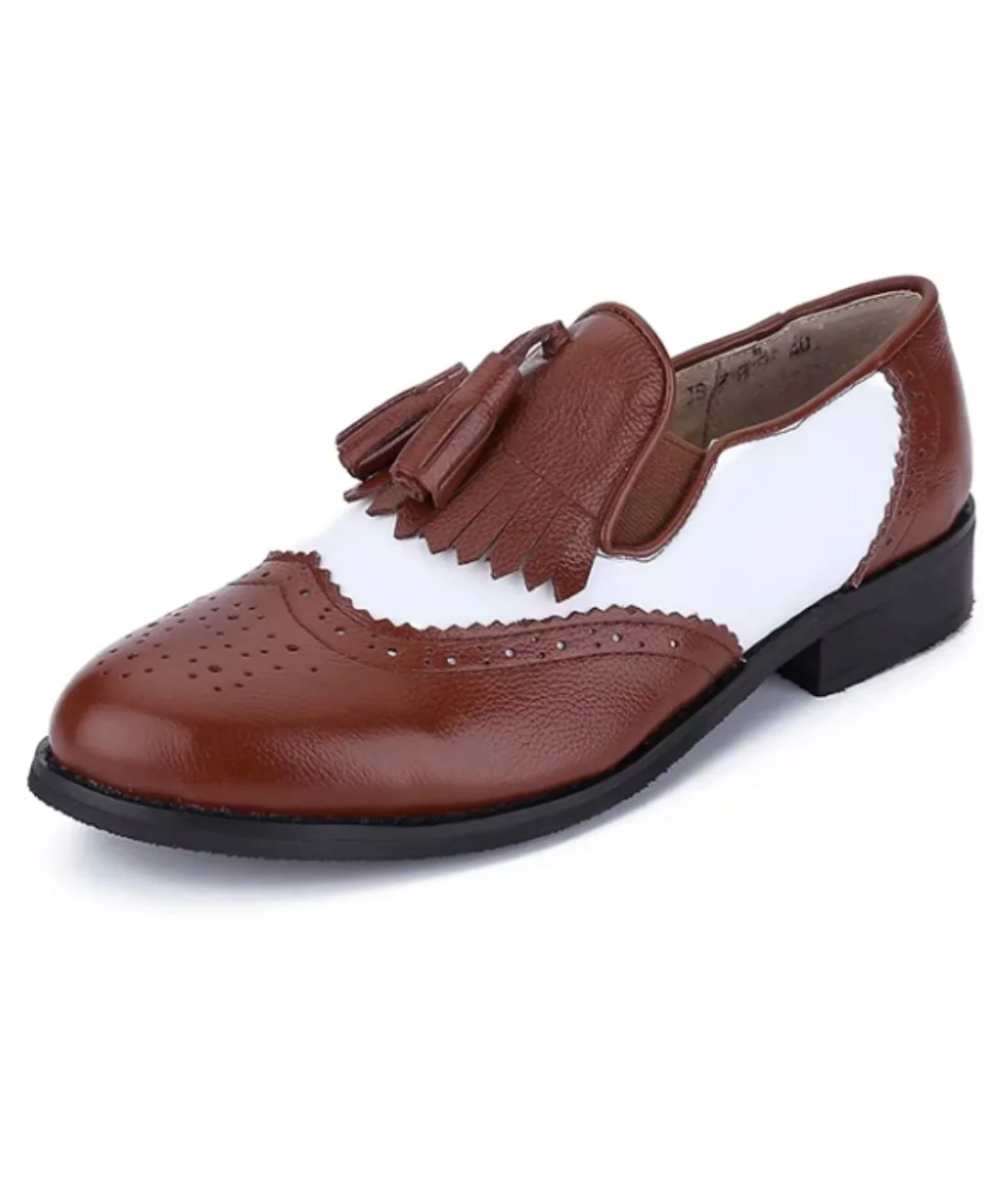 Portez sur vous l’élégance de ces chaussures habillées en cuir marron et blanc !