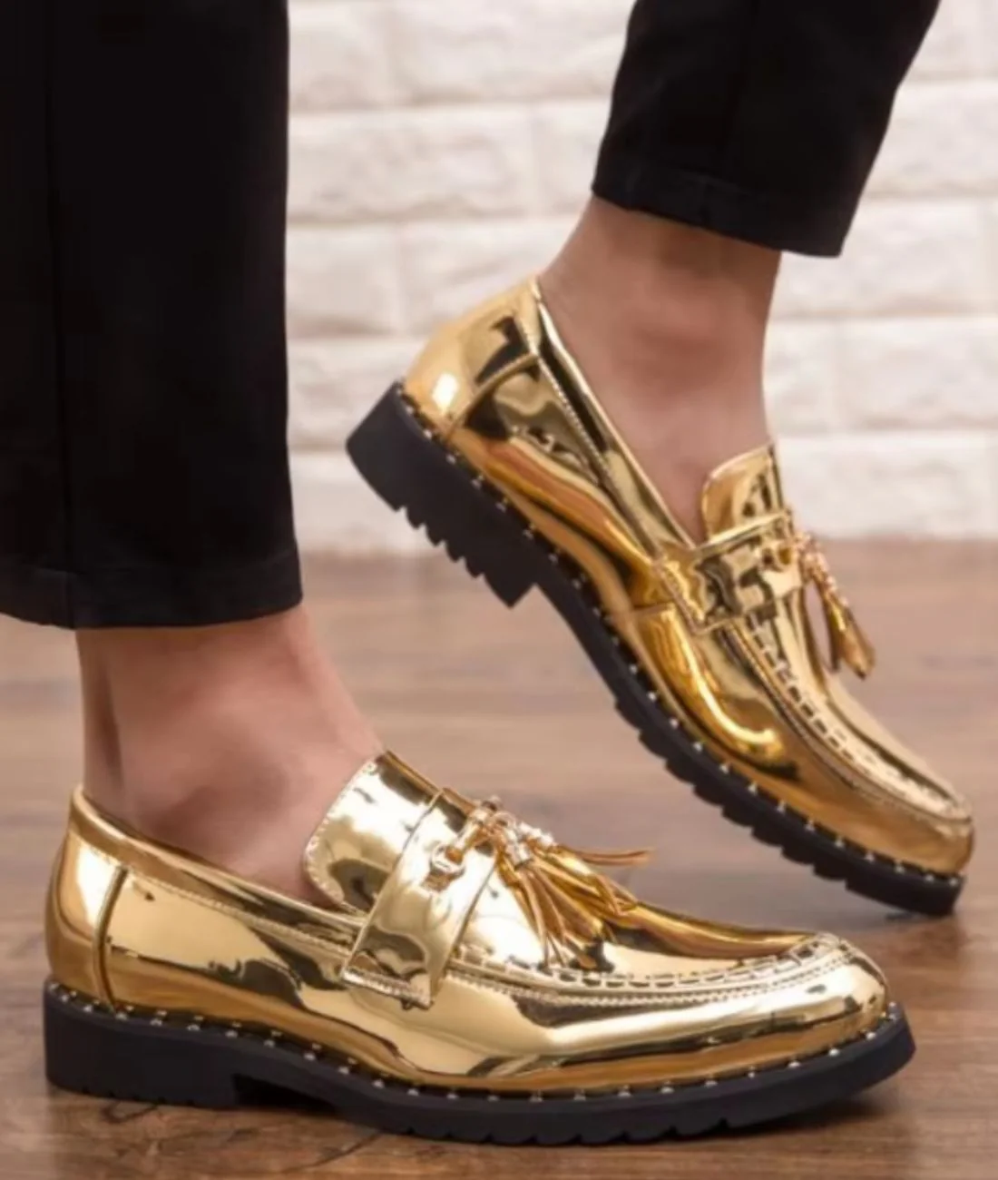 Avec ces mocassins à glands vernis et boucle dorée, tu seras le centre de l’attention à chaque événement. Ose briller et affirme ton style unique avec cette touche d’élégance dorée. Parfaits pour les fêtes, les soirées spéciales ou simplement pour ajouter une note festive à ton quotidien, ces mocassins sont un incontournable de ta garde-robe. Fais un pas vers la distinction et la classe avec Le Mocassin.