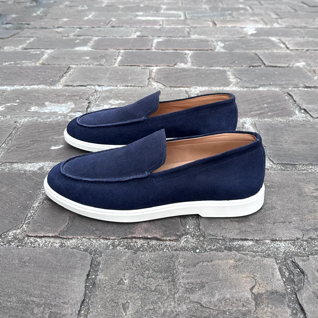 Fabrication artisanale, pour toutes les saisons, style casual chic décontracté. Des chaussures masculines en veau velours très polyvalentes et faciles à associer avec divers styles vestimentaires.