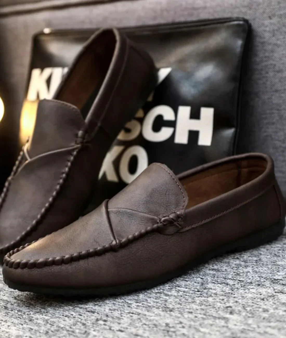 Cette chaussure basse à bout rond est la représentation même du mocassin traditionnel que portaient les hommes, et qu’ils aiment toujours porter ! Les coutures soigneusement travaillées rendent cette chaussure résistante dans le temps. La conception en simili cuir très réaliste de ces mocassins masculins présente un effet écru, rappelant le style d’antan. C’est le genre de modèle intemporel qui produit toujours un effet classe où que vous vous rendiez ! vous pouvez le porter durant des occasions décontractées en vacances en bord de mer en plein été, ou en tant qu’invité à un mariage de printemps.