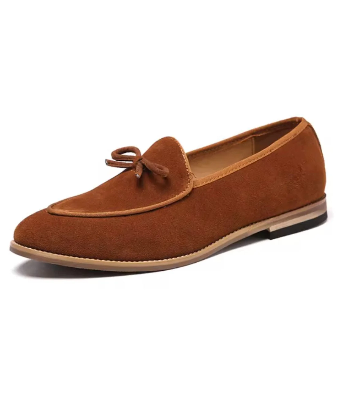Une paire de mocassins colorés unis en daim pour hommes, conçue pour sublimer votre style en toute saison.