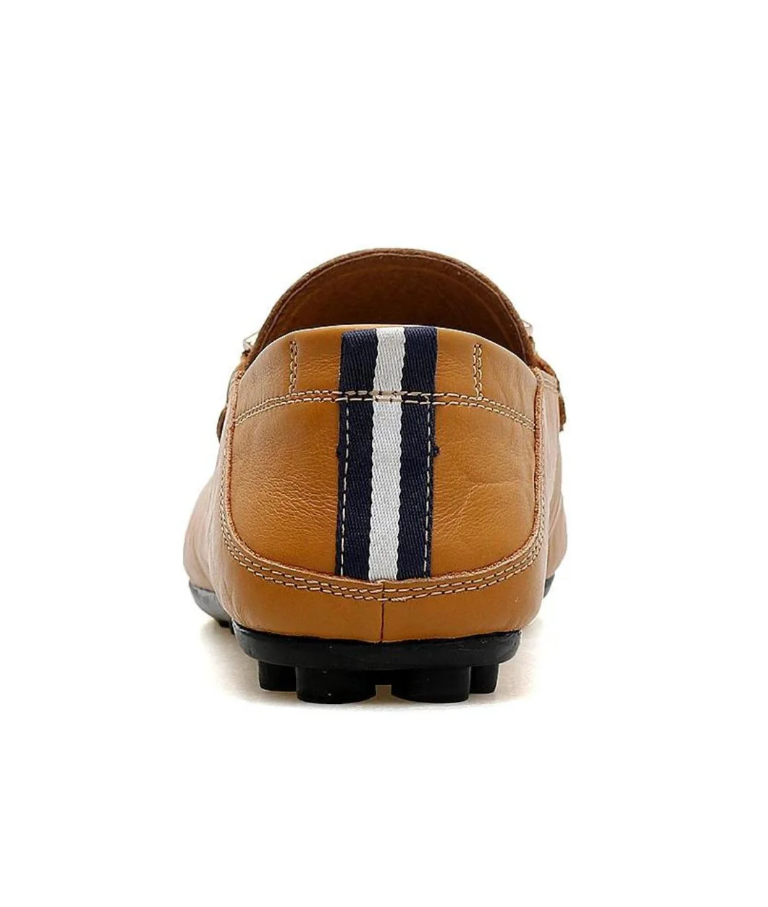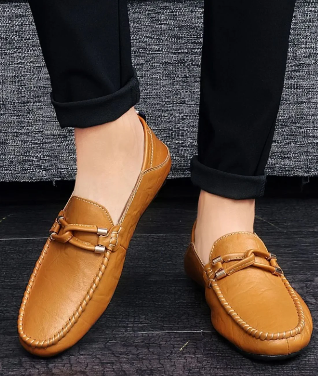 Portez aux pieds l’élégance estivale de nos mocassins de mariage pour hommes, en cuir de synthèse réaliste, et à la couleur camel.