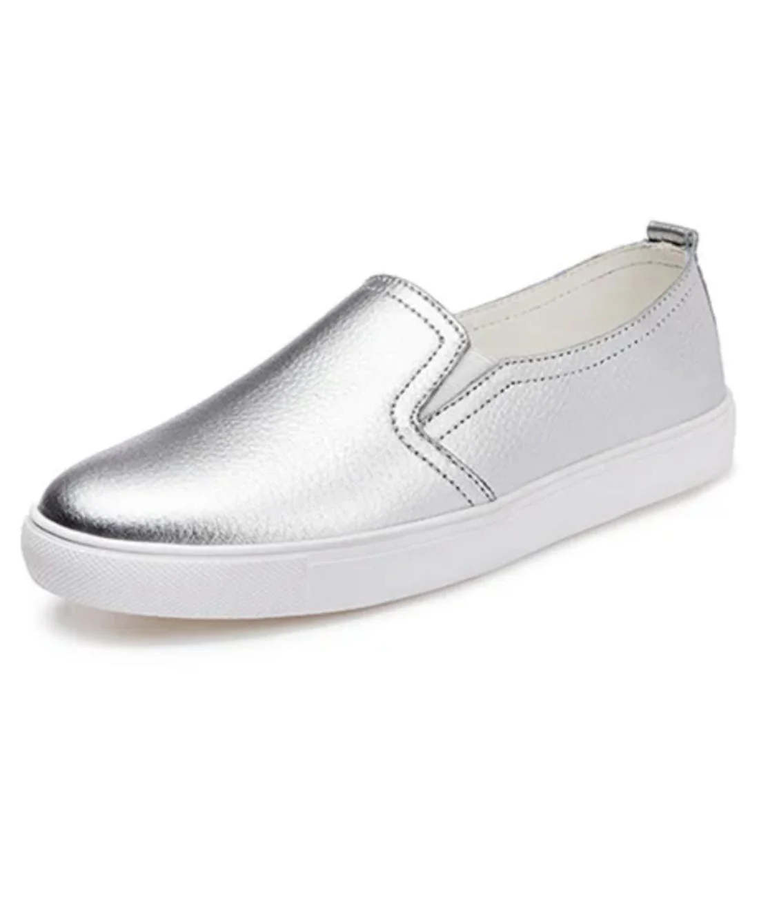 Mesdames, découvrez un accessoire original et tout en confort pour offrir à vos pieds un look frais et élégant, où que vous alliez. Le look étincelant de ces mocassins d’un coloris gris éclatant les rendent raffinés et discrets à la fois, et ils s’accordent avec la quasi totalité de votre garde-robe féminine de printemps-été. Faciles à mettre et à retirer, ces mocassins en simili cuir lisse possèdent une semelle de 2 cm, afin de préserver le confort des pieds durant la marche. L’intérieur de la semelle comprend une confection en simili cuir tout aussi confortable.