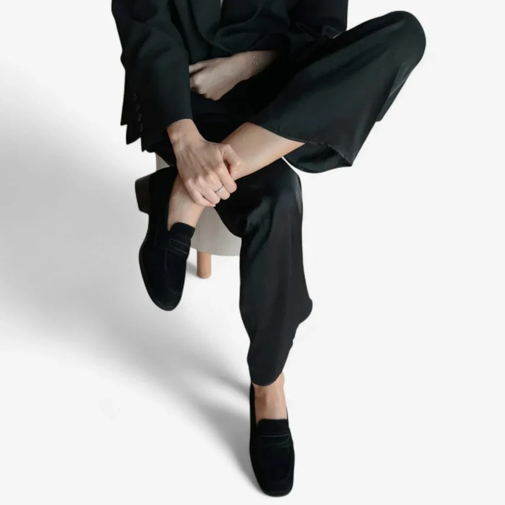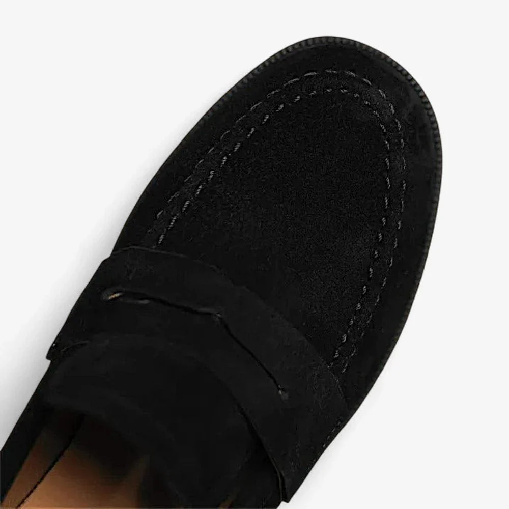 Mocassins Femme à Talon en Daim Noir : L’Élégance à Chaque Pas
