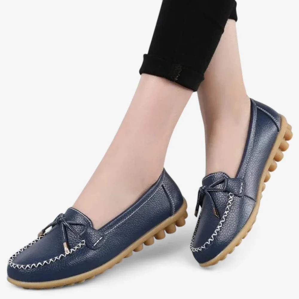 Découvrez Nos Mocassins Femme en Cuir Bleu Marine avec Nœud Esthétique