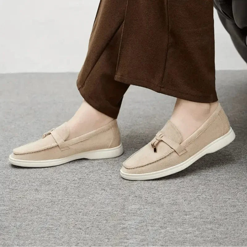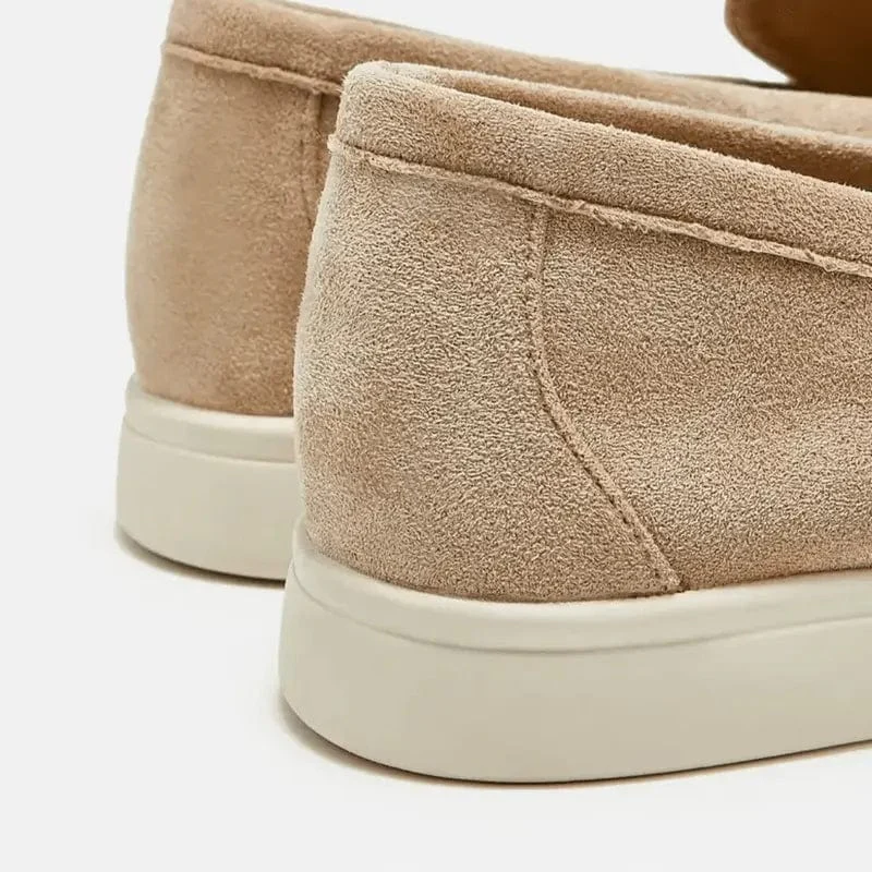 Mocassins femme en daim beige : douceur et équilibre pour vos pas