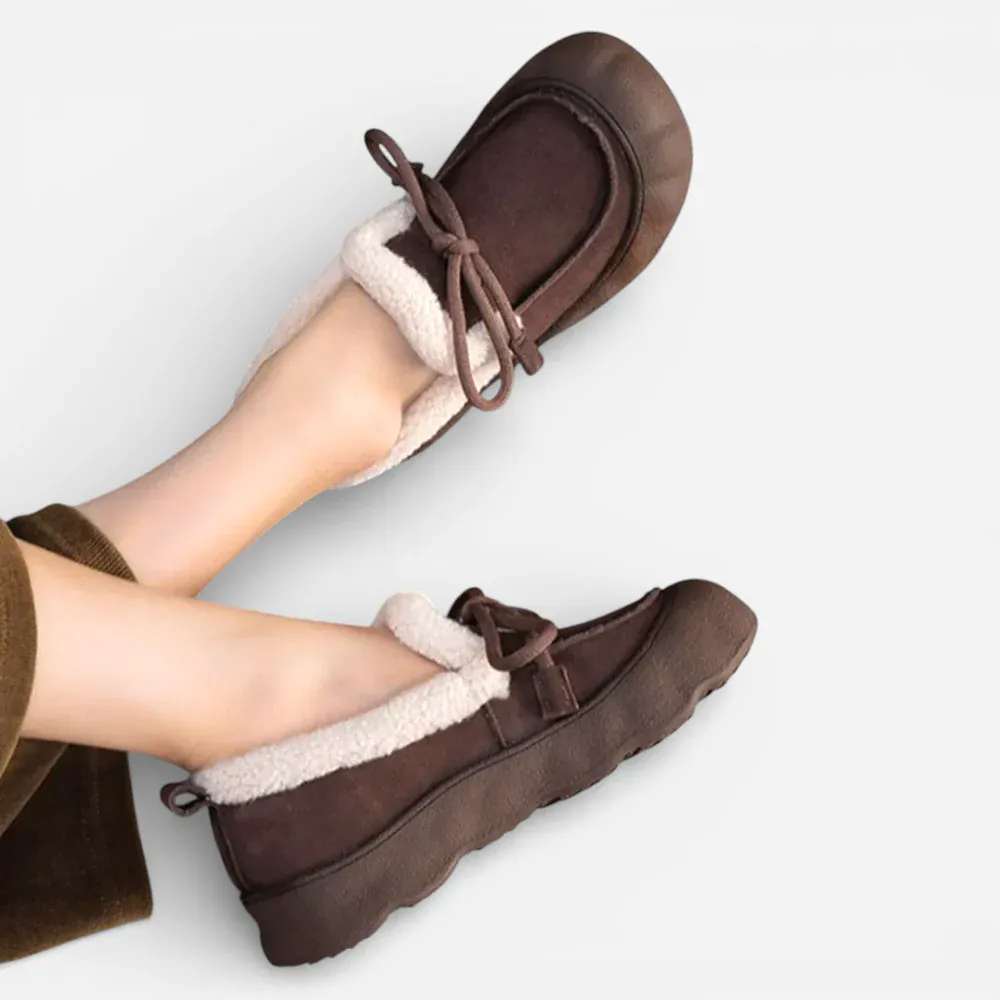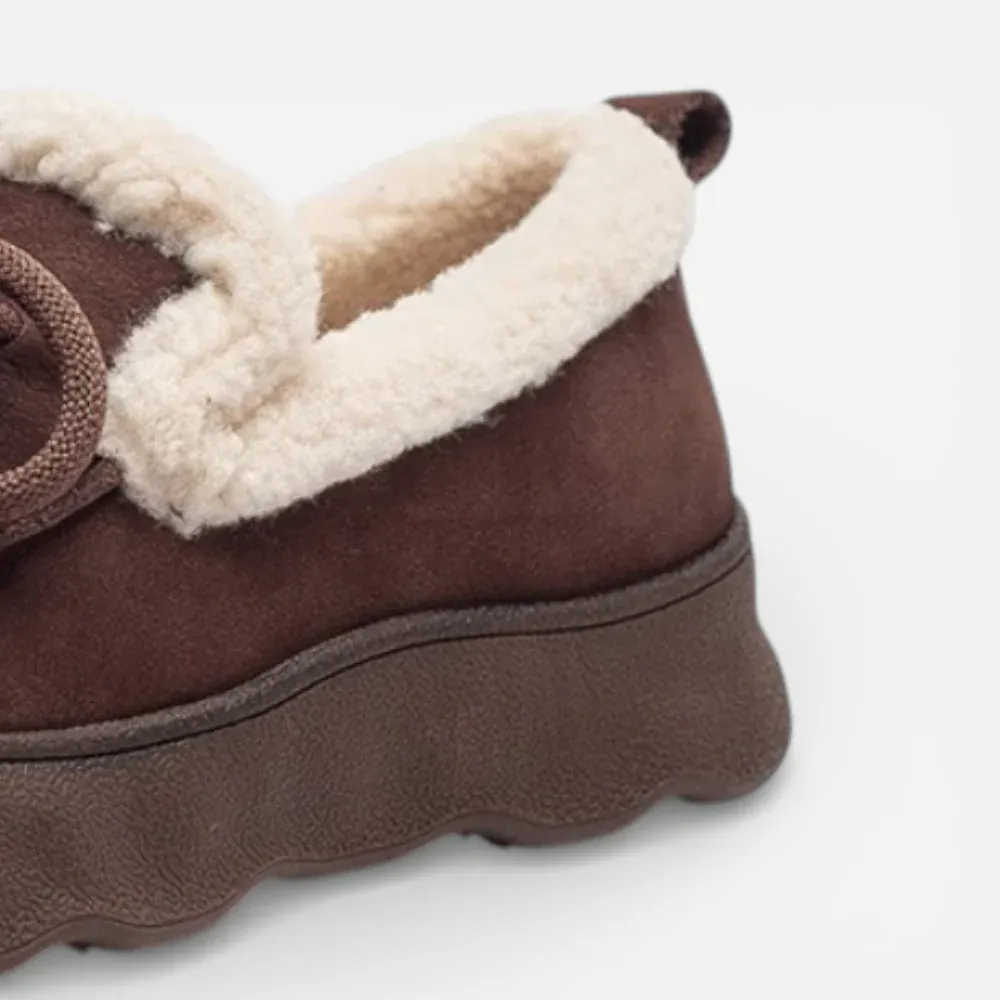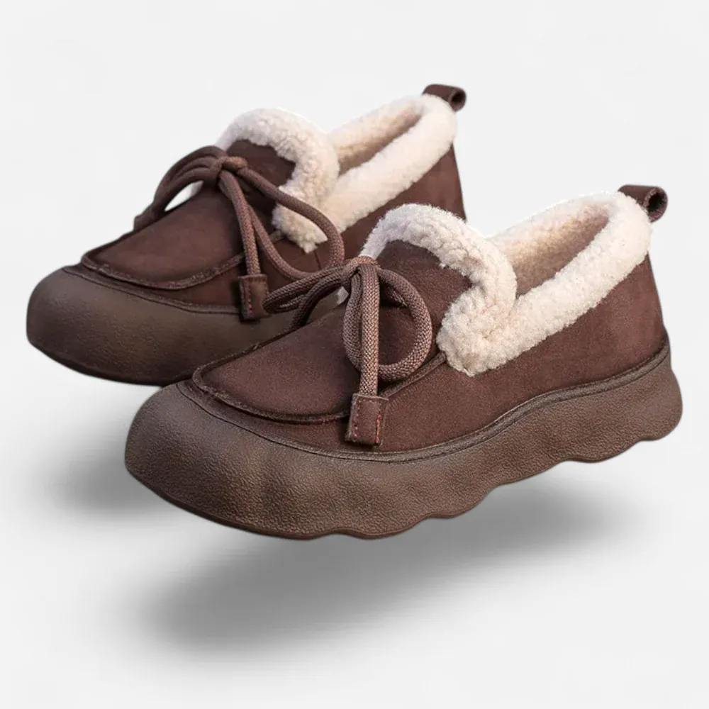 Découvrez les Mocassins Femme Hiver en Cuir & Daim Marron Plateforme