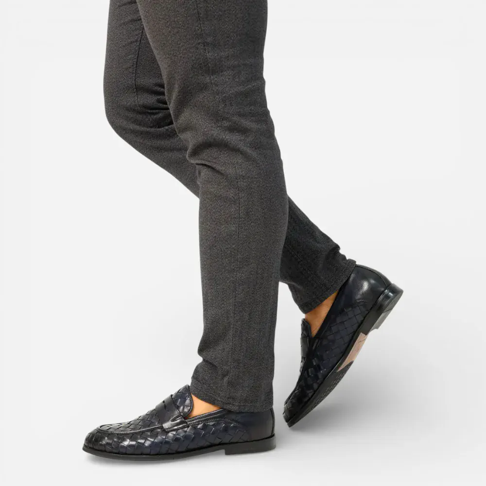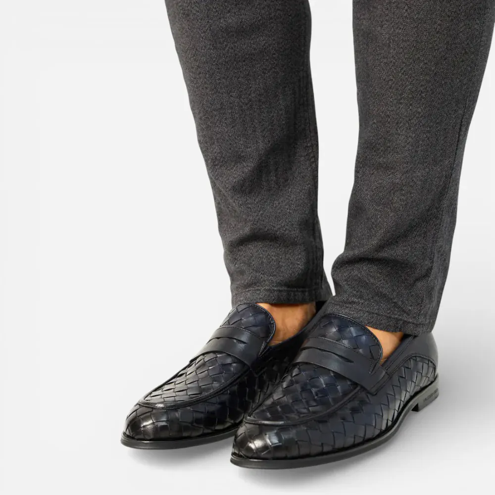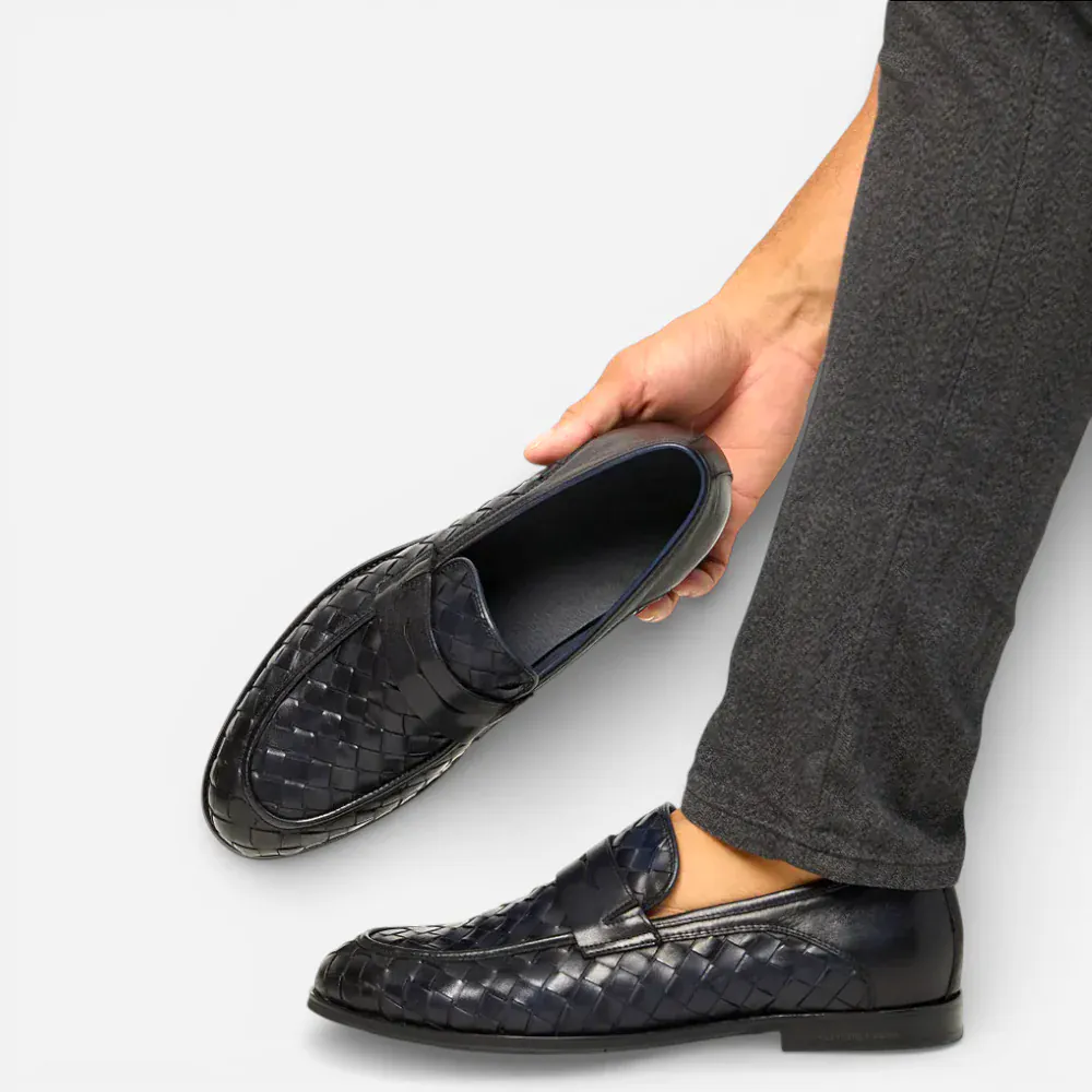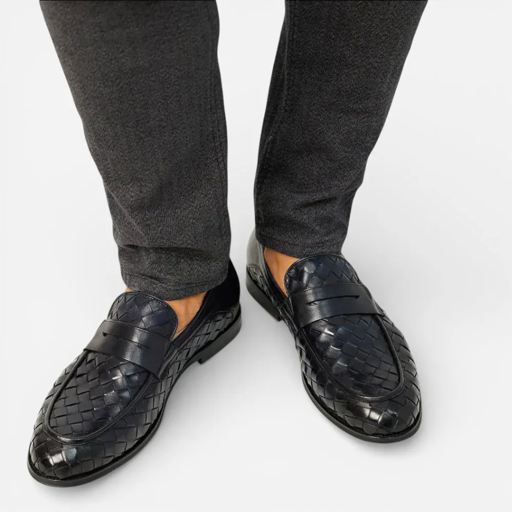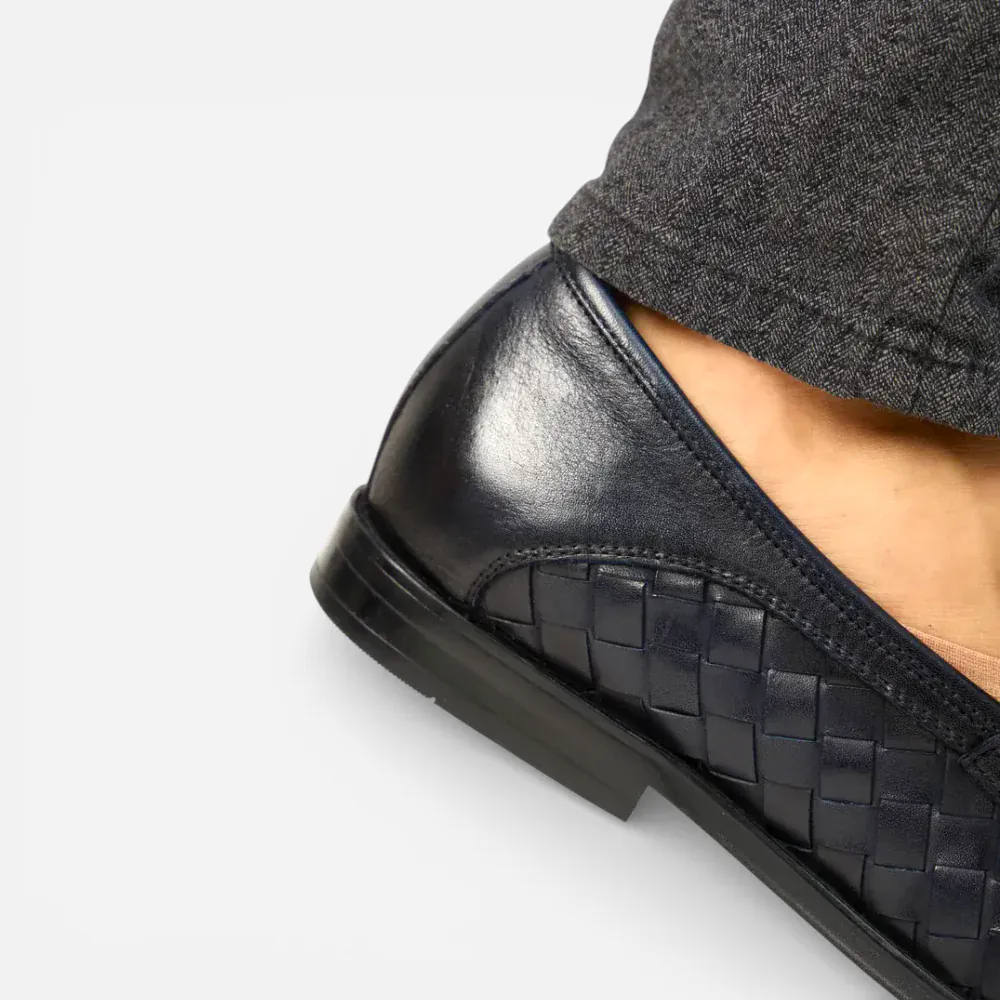 Mocassins Homme en Cuir Bleu Marine Tressés : L’Élégance à l’État Pur