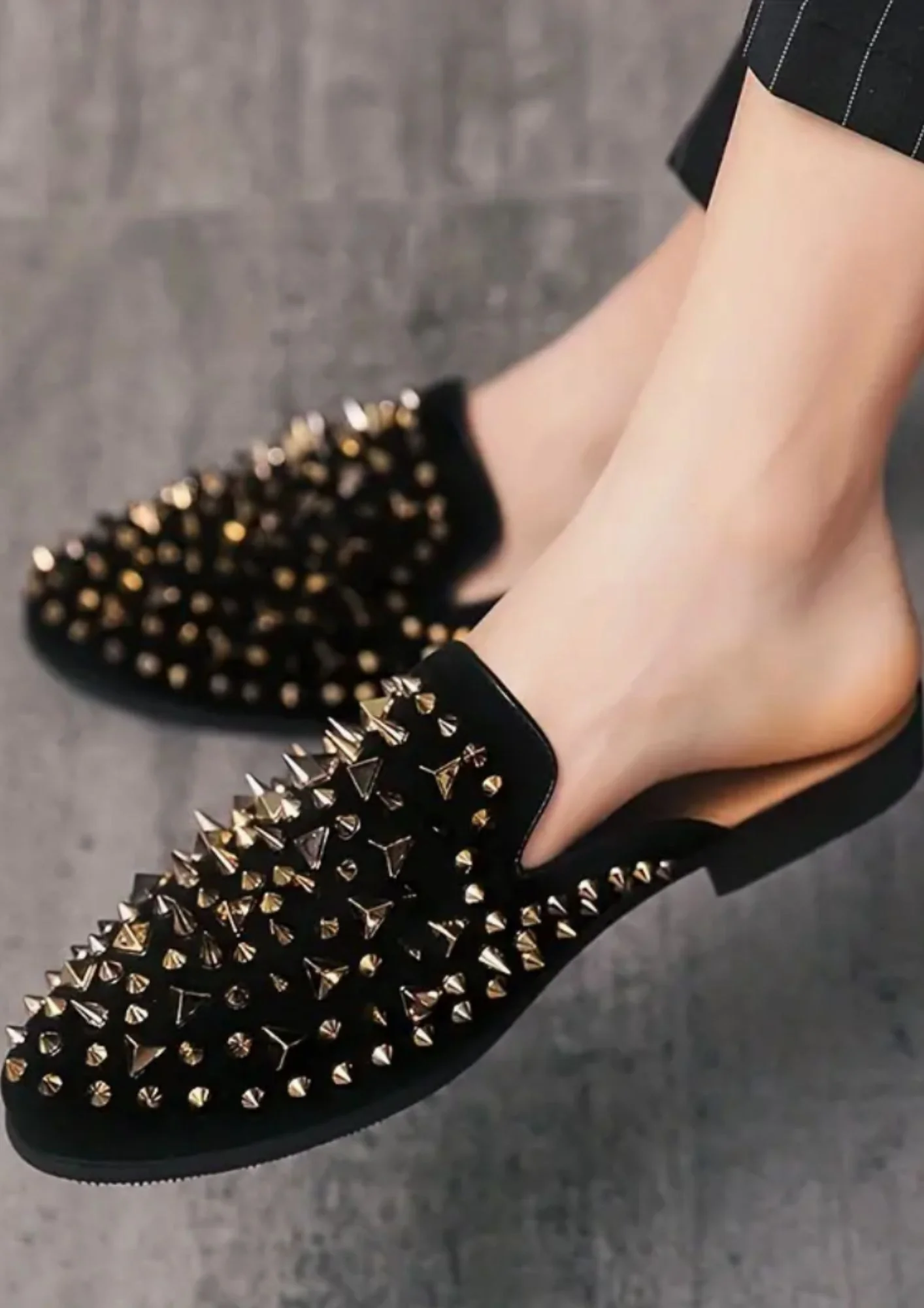 Ce qui est sûr, c’est que vous marquerez les esprits avec caractère et audace en arborant cette paire de mocassins noirs et dorée à clous. Un design peu commun et très sophistiqué, dans l’ère du temps chez les hommes qui aiment affirmer leur caractère avec un certain goût du luxe, dû aux clous plaqués or. Le style mule de ce mocassin permet de le chausser en un éclair, et de le retirer tout aussi rapidement.