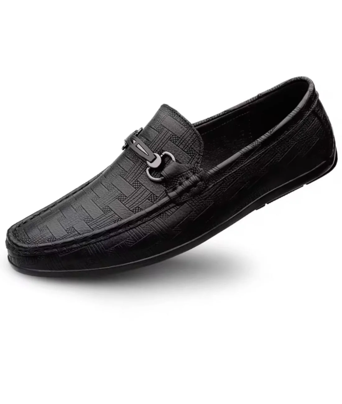 Messieurs, découvrez la combinaison idéale entre confort et élégance, avec notre nouvelle paire de mocassins orthopédiques souples à large ouverture pour homme. Conçus en cuir noir rigoureusement choisi, ces chaussures révèlent un design très distingué et dynamique, de part leurs motifs contenant des carreaux striés, ainsi qu’un mors en métal. Leur texture en cuir est agréable au toucher, ce qui apporte un haut niveau de confort, alors que la semelle en caoutchouc de type plate, vous assure une marche stable.