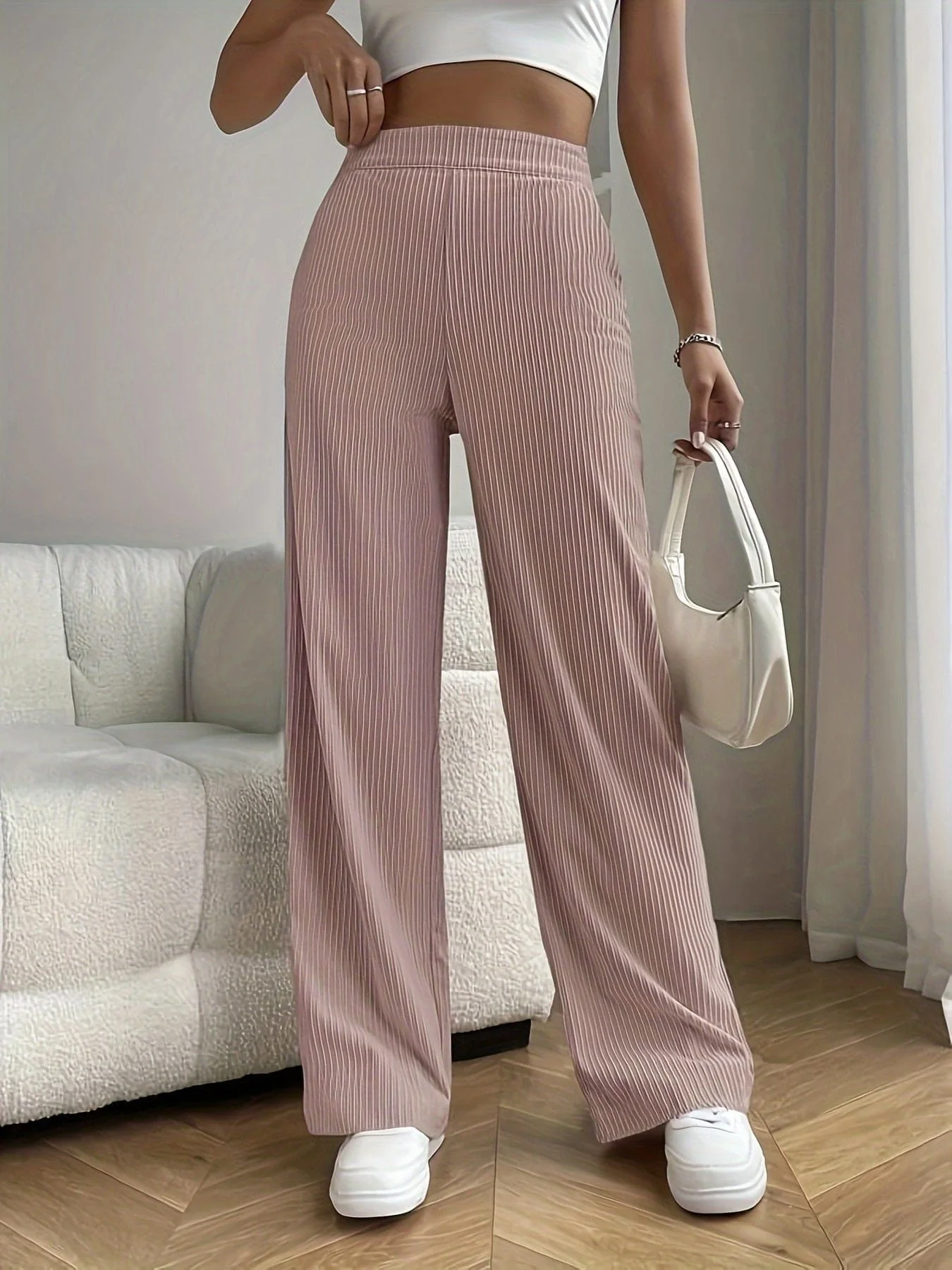 Pantalon large pour femme – Taille haute – Motif à fines rayures – Coupe longue élégante. Rehaussez votre garde-robe avec ce pantalon large chic à fines rayures. Doté d’une taille haute flatteuse et d’une coupe longue élégante, ce pantalon offre confort et style en toute occasion.