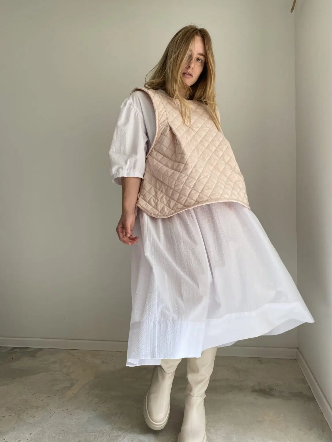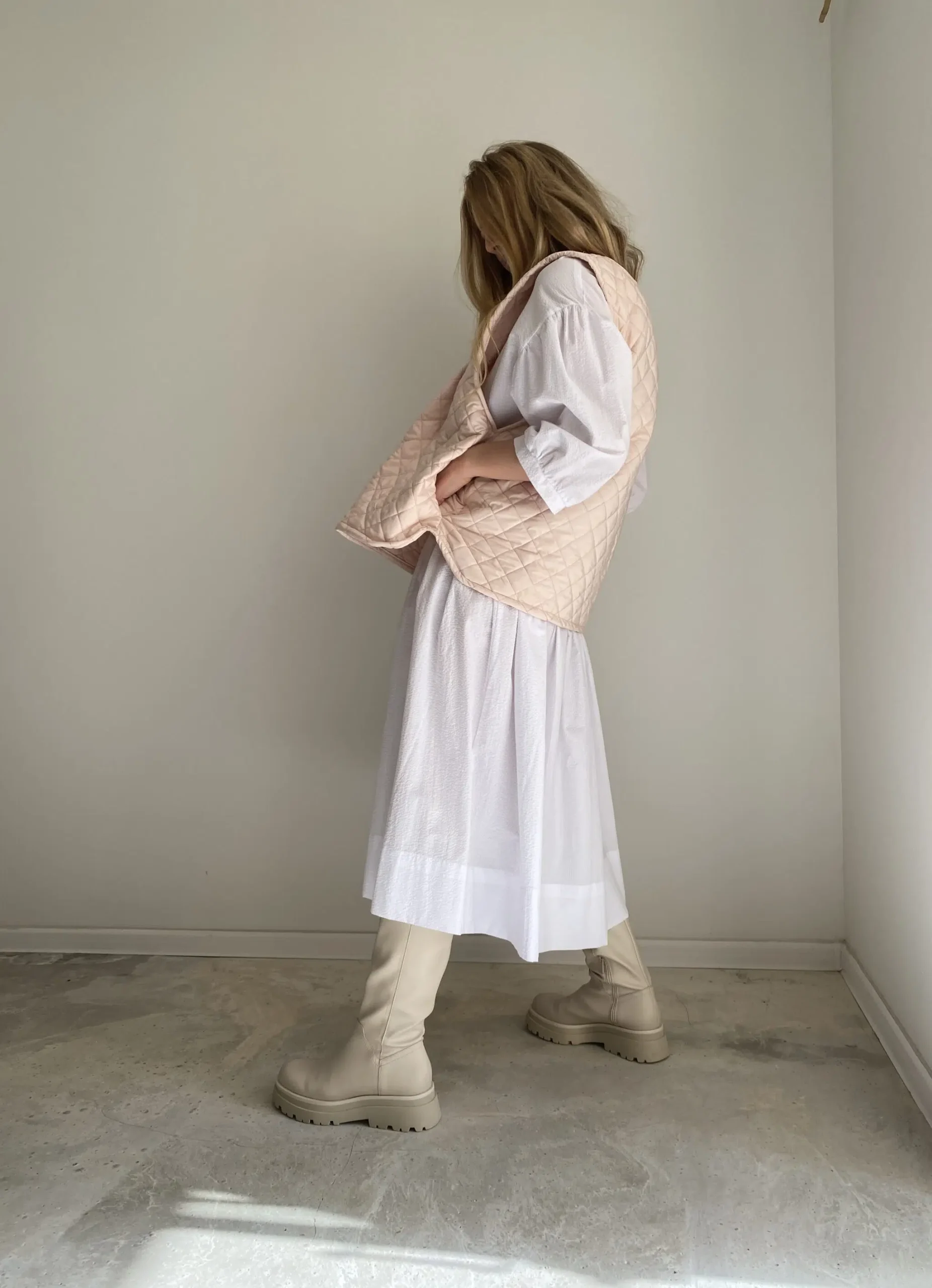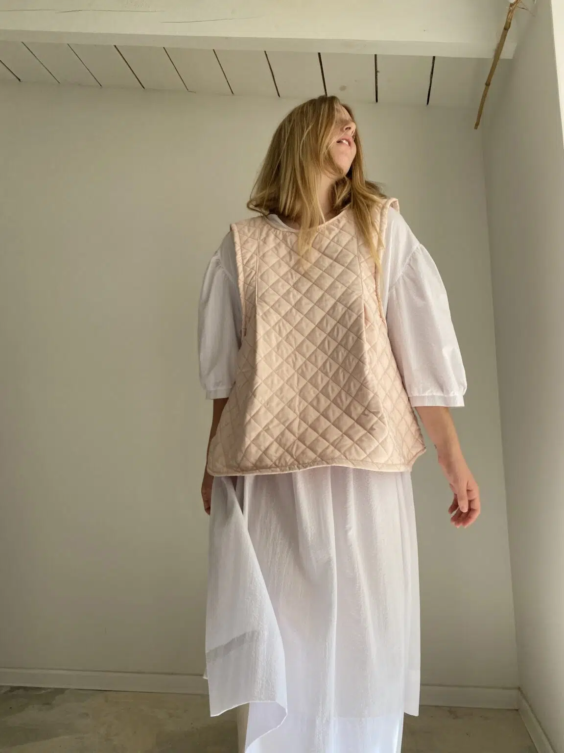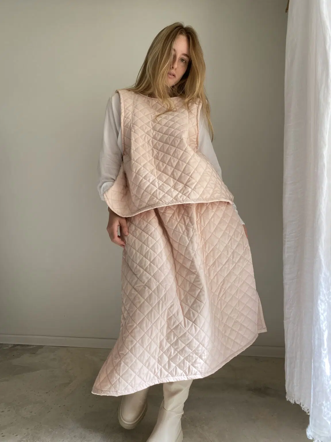Pardessus matelassée rose poudrée, sans manches, poches latérales, léger et surtout UNIQUE ! LA pièce tendance !
