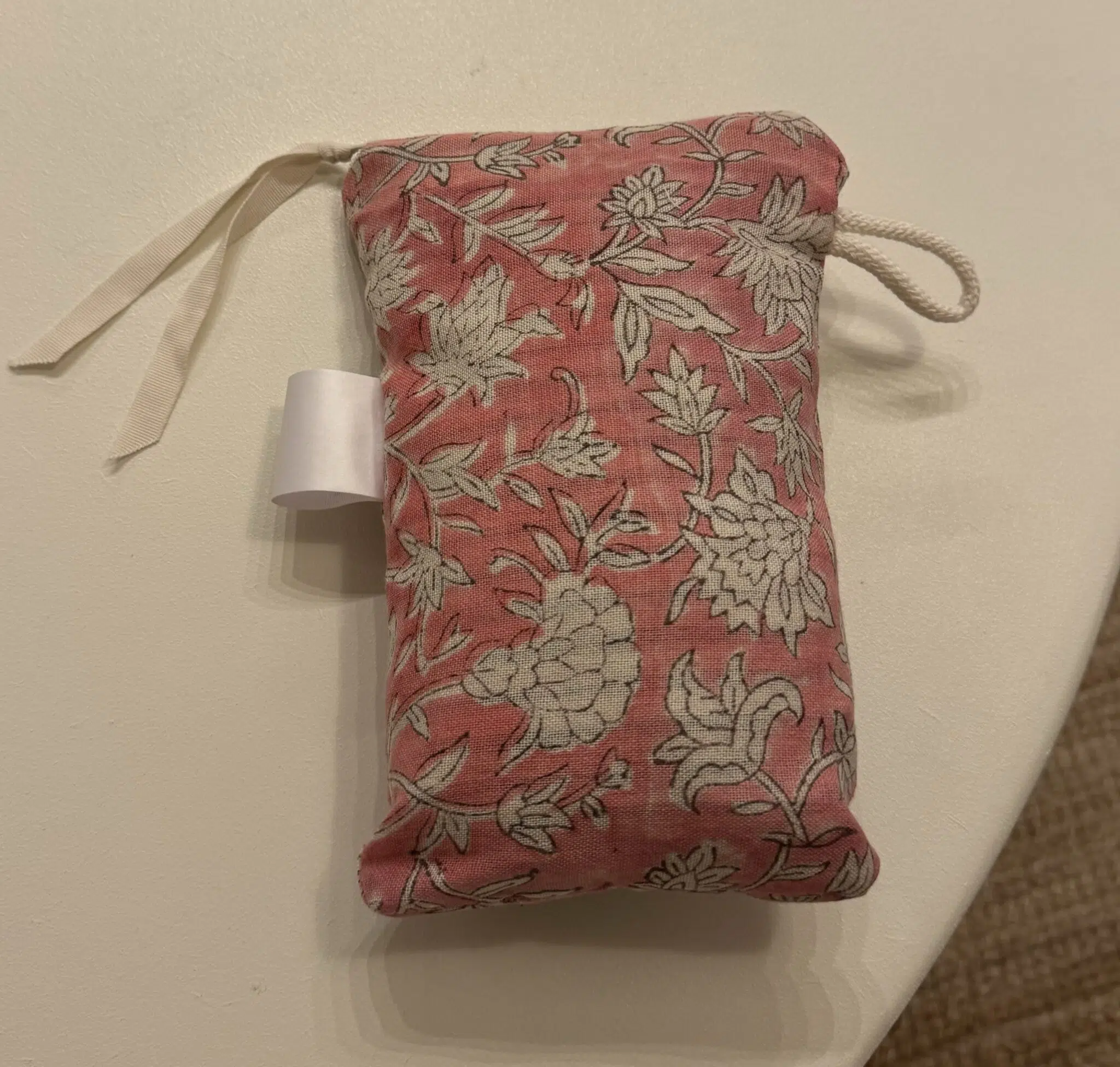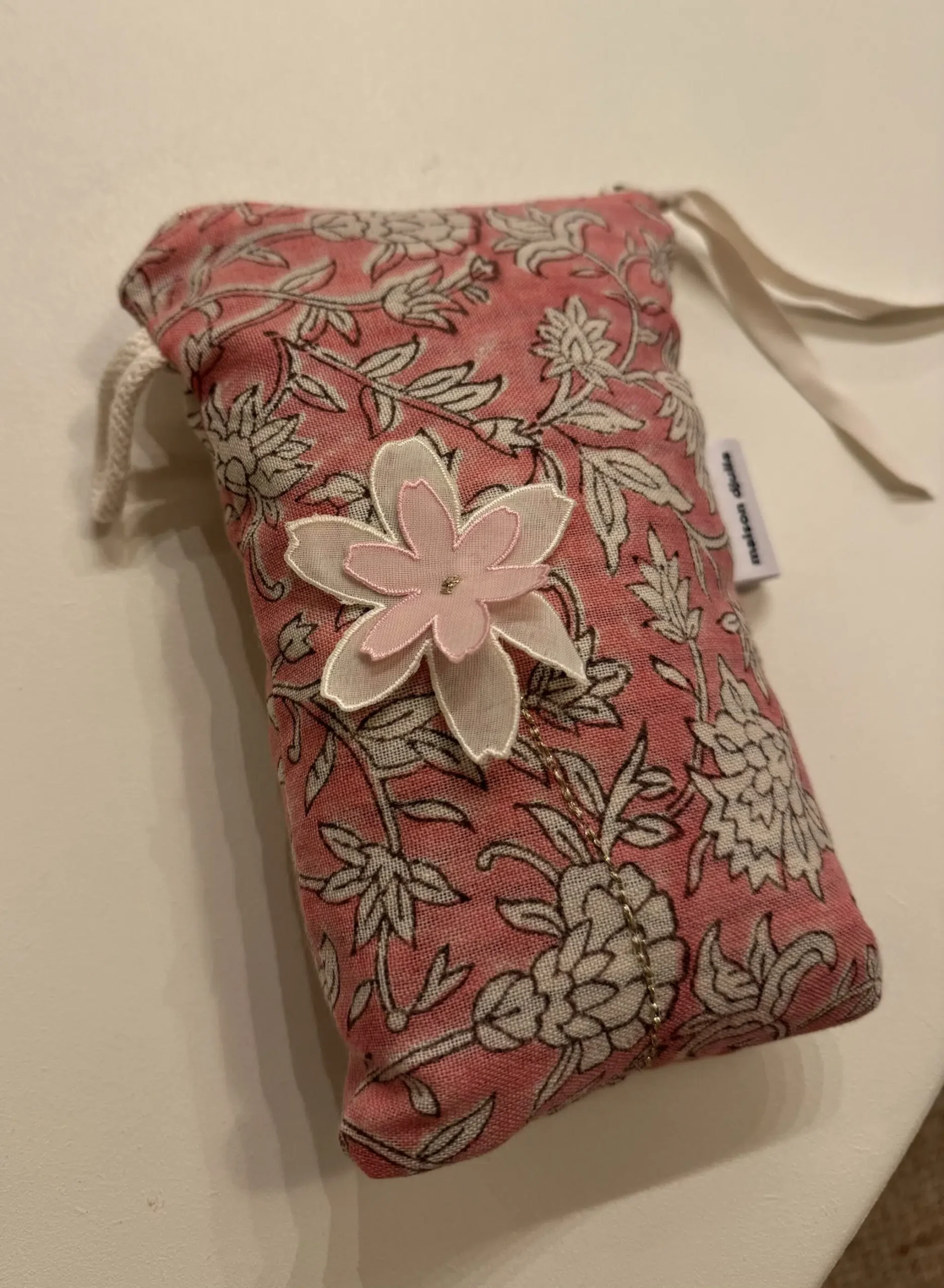 Pochette fleurie. Doublure en lin grège à rayures grises. Fleur en organza en 3D. Broderies main fil lurex. PIÈCE UNIQUE