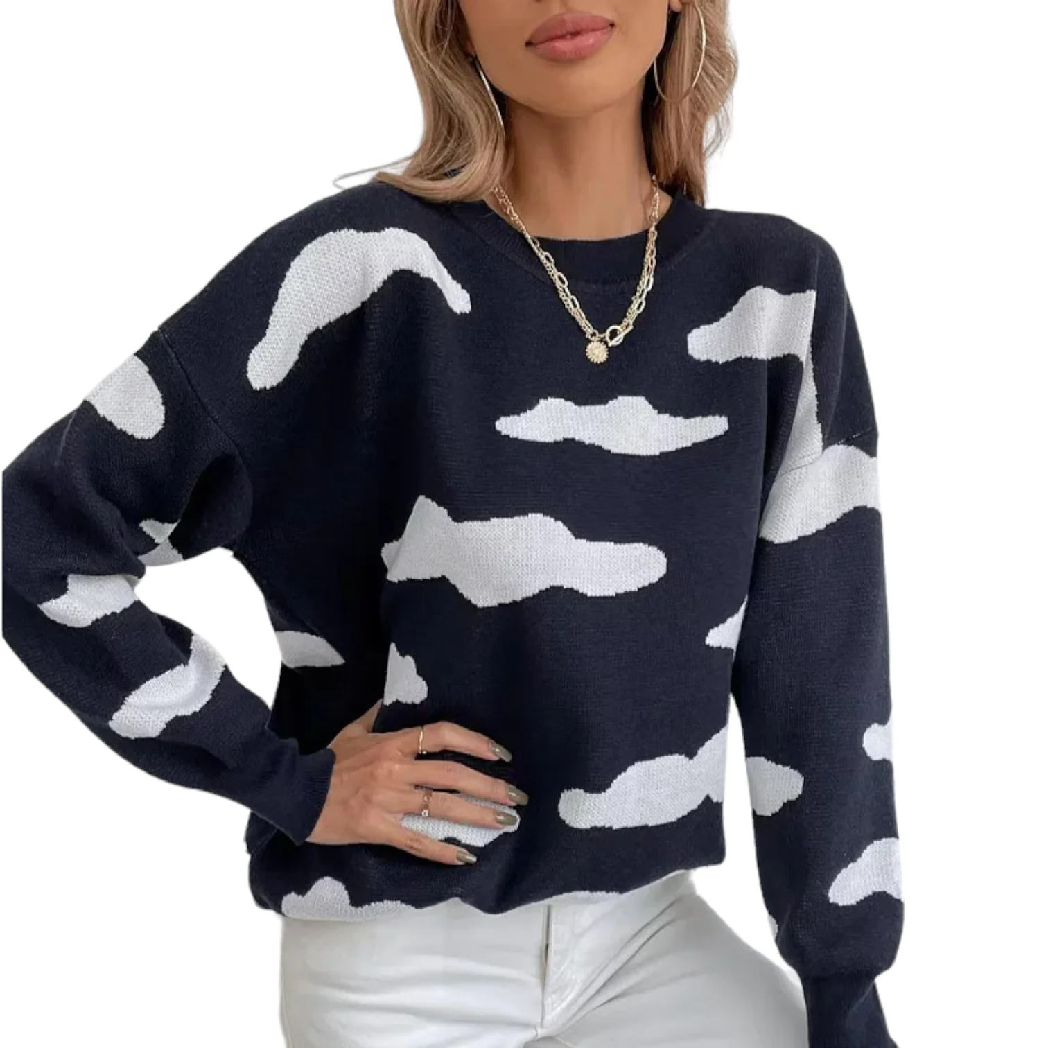Un Pull Avec Nuage, droit et moderne pour illuminer votre tenue. Vous serez certainement sublime en portant ce pull avec ses motifs nuage qui rendra votre habit plus chic grâce aux tons blancs. C’est le genre de vêtement qui ajoutera du pep à votre look et vous rendra attrayant. N’hésitez pas à porter ce pull pour finaliser votre look ainsi que pour être remarquable.